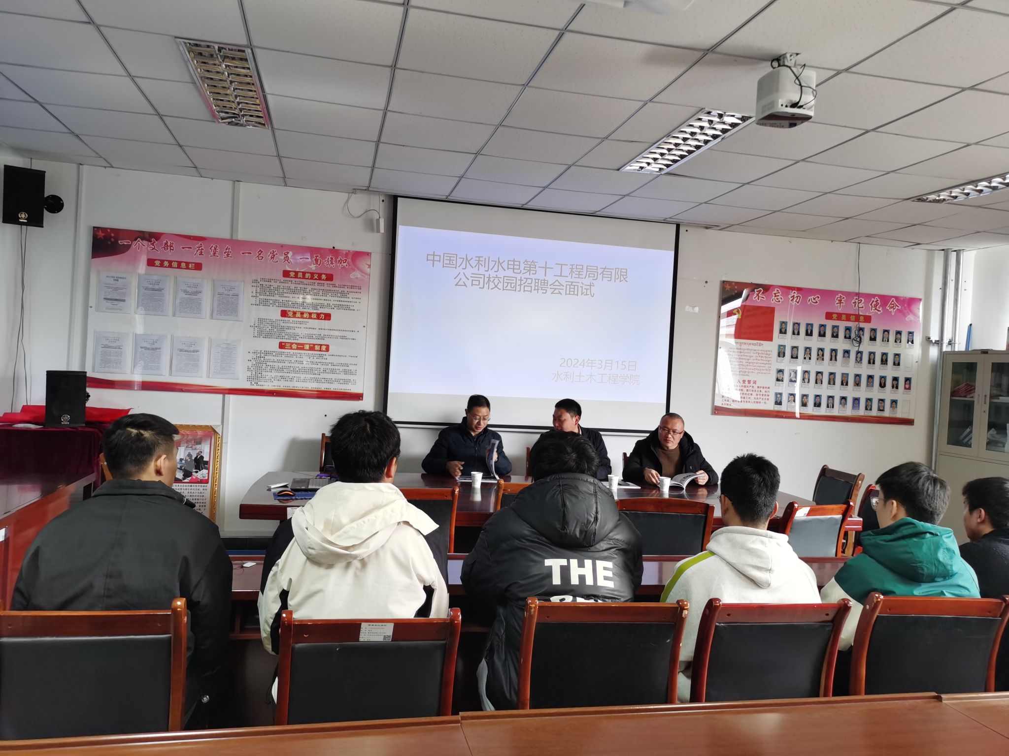3月6日下午中国水利水电第十工程局有限公司党委书记、总经理王利一行三人到欧博水利土木工程学院举办校园招聘会。