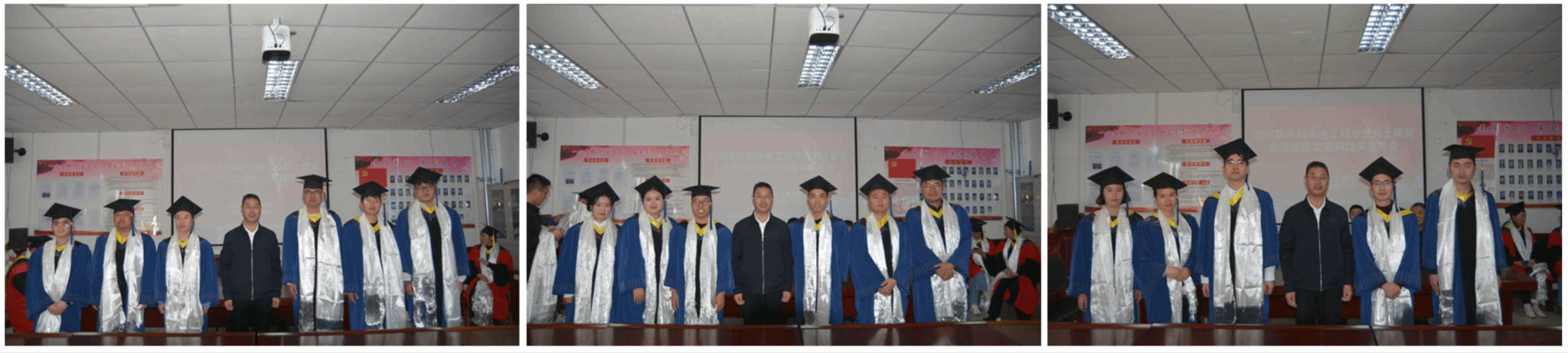会议首先由李成林副院长介绍了参会人员,对导师们的辛苦指导工作表示了感谢,尤其是郭永刚教授一人指导10几名21级研究生,工作之艰辛,最终指导的学生全部顺利通过毕业答辩。其次王培清院长代表水利土木工程学院以及学院硕士研究生学位论文审查答辩委员会对2024届水利水电工程专业全体硕士研究生顺利通过毕业论文答辩表示了祝贺,并为导师们及全体参会21级研究生献上了哈达祝福。