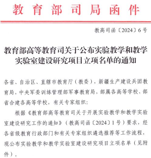 喜讯!我院获批教育部实验教学和教学实验室建设研究项目立项