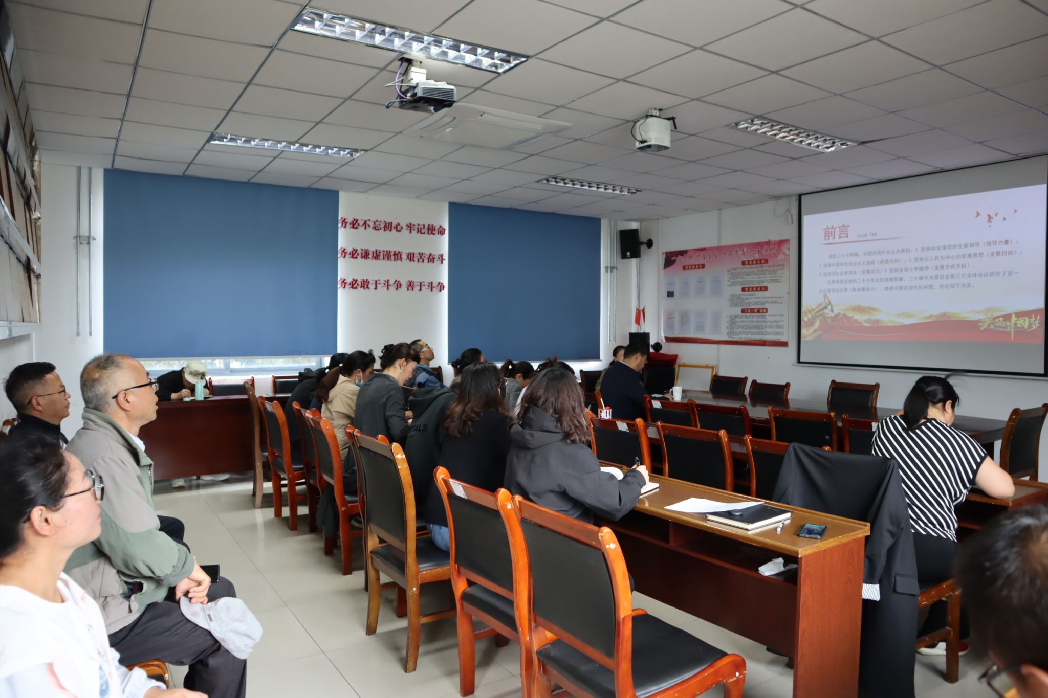 为深入学习好宣传好贯彻好党的二十届三中全会精神和区党委十届六次全会精神,切实把思想和行动统一到党中央决策部署上来,9月20日上午,欧博宣讲团成员张涛老师在水土学院二楼会议室开展了学习贯彻党的二十届三中全会精神和区党委十届六次全会精神宣讲活动。校计财处及我院全体无课教职工参加。