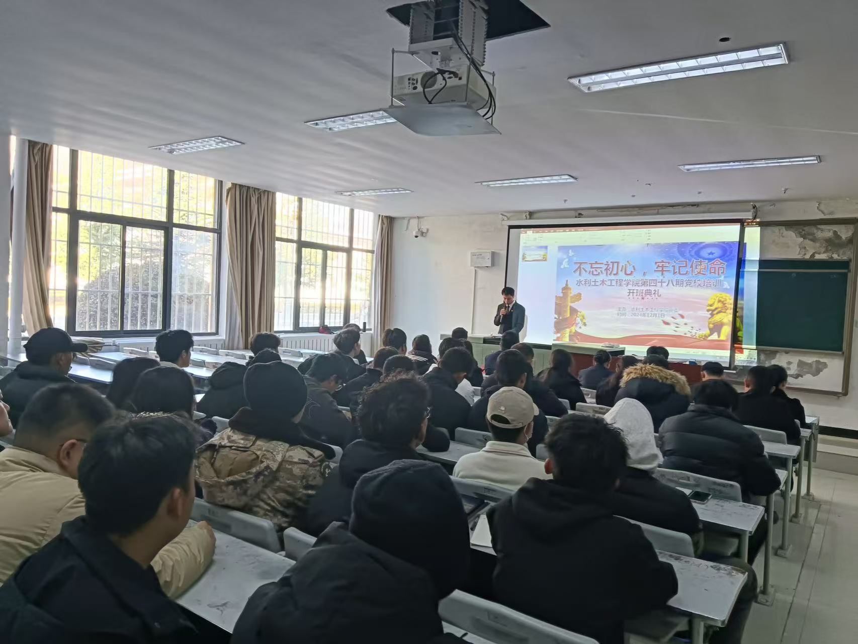 为深入学习习近平新时代中国特色社会主义思想和党的二十大精神,贯彻落实党的二十届三中全会精神,教育引导广大青年学生深刻领悟“两个确立”的决定性意义,不断增强“四个意识”、坚定“四个自信”、做到“两个维护”,根据学院党建工作计划,在前期精心准备基础之上学院党委举办了学院第四十八期党校,并于2024年12月1日10时在第四教学楼4105举行了开班典礼,院党委副书记潘多、党员工作站站长苏云、各支部副书记、各部门负责人以及77名学员参加了典礼。