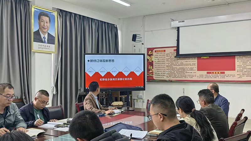 随后,教工支部书记杨林开展了“支部书记讲党课”活动,向大家讲授了纪律处分条例修订背景与缘由,并阐述2023年版《中国共产党纪律处分条例》体现二十大精神、全面服务于党的建设发展的相关内容,让大家清楚本次修订内容主要体现的三个方面,即服务于党的纪律建设、服务于党的制度建设和服务于党的事业发展。讲授深入人心,入心入脑,让全体党员认识到只有把严于律己刻进骨子里,在大是大非面前坚持正确立场,在蝇头小利面前树牢底线原则,把对党忠诚体现到干事创业的全过程各方面,才能努力成为不负人民的新时代好干部。