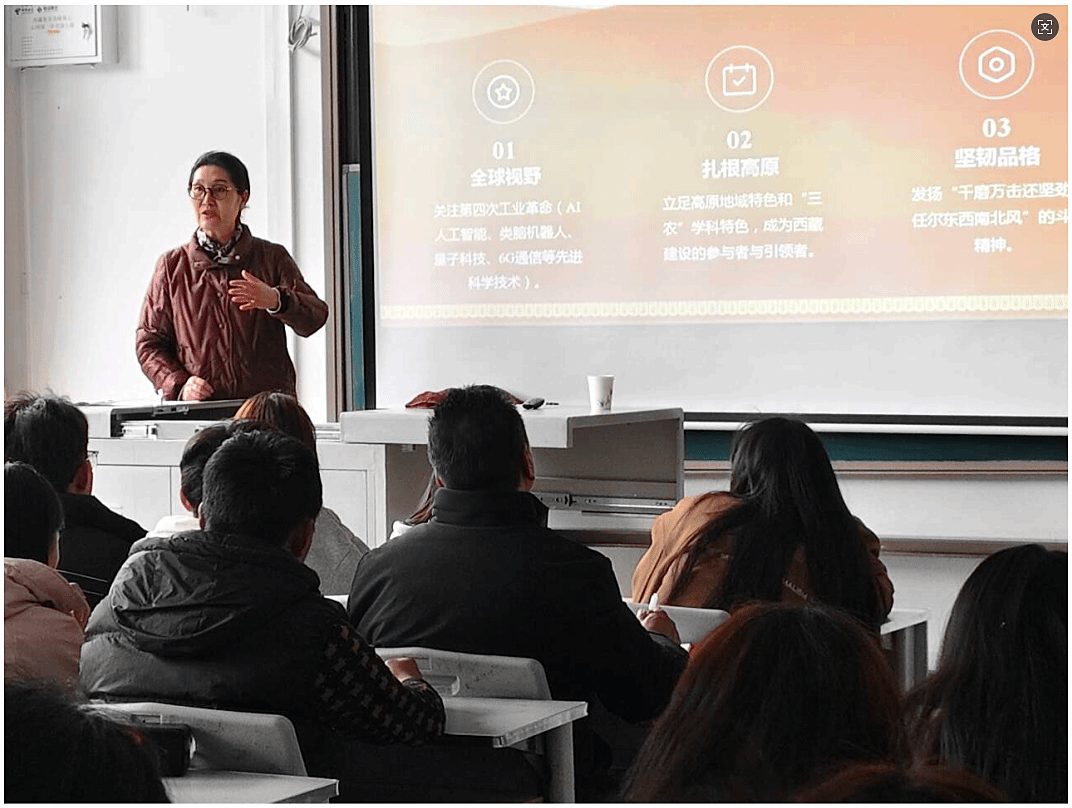 2025年3月17日下午,校党委副书记、校长强巴央宗在4205教室为食品科学学院学生讲授了题为《用奋斗点亮青春之梦》的开学第一课。