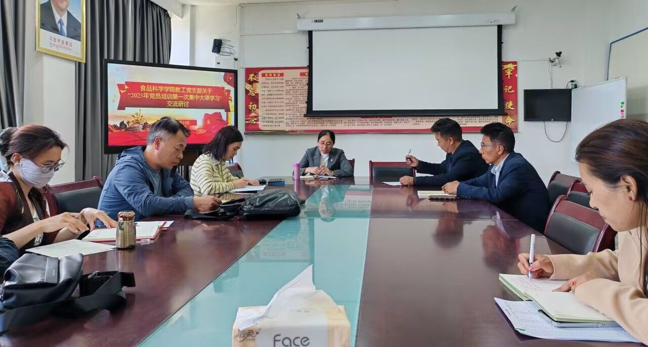2025年6月13日,食品科学学院教工党支部开展“2025年党员培训第一次集中大学学习”专题研讨会议,会议由教工党支部副书记池福敏主持,学院全体在校20名党员参加此次会议。