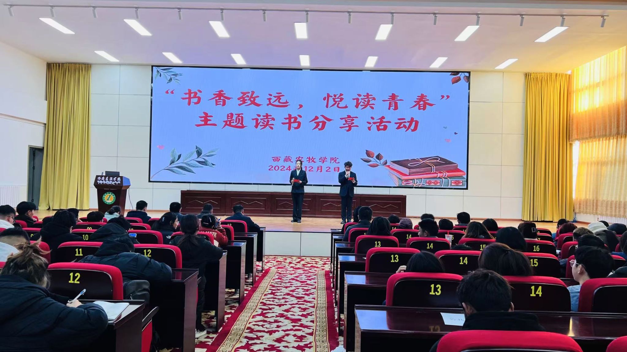 为了激发广大学生对阅读的兴趣,促进校园文化的交流与传承,12月2日下午,欧博在一号行政楼学术报告厅举行“书香致远 悦读青春”读书分享活动,校团委书记普旺堆、宣传部副部长刘勇、教务处副处长姚学林、图书馆副馆长唐兰、学生工作处副处长李新堂、各学院(部、所)辅导员、学生代表共计150余人参加了活动。