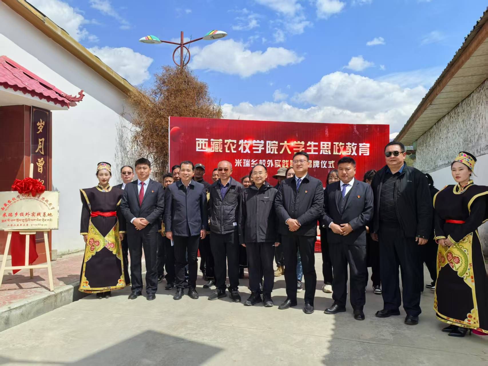 为深入贯彻落实习近平总书记关于加强和改进大学生思想政治工作的重要指示精神,进一步推动大学生思想政治教育工作创新发展,2025年3月21日,西藏农牧学院大学生思政教育米瑞乡校外实践基地揭牌仪式在米瑞乡隆重举行。学工处负责同志、科级干部,米瑞乡党委、政府、人大三大班子负责同志,林芝市卫健委驻村干部,色过拉村两委负责同志、村史馆管理人员、村民代表,共50余人参加活动。揭牌仪式由学工处副处长杨建军主持。