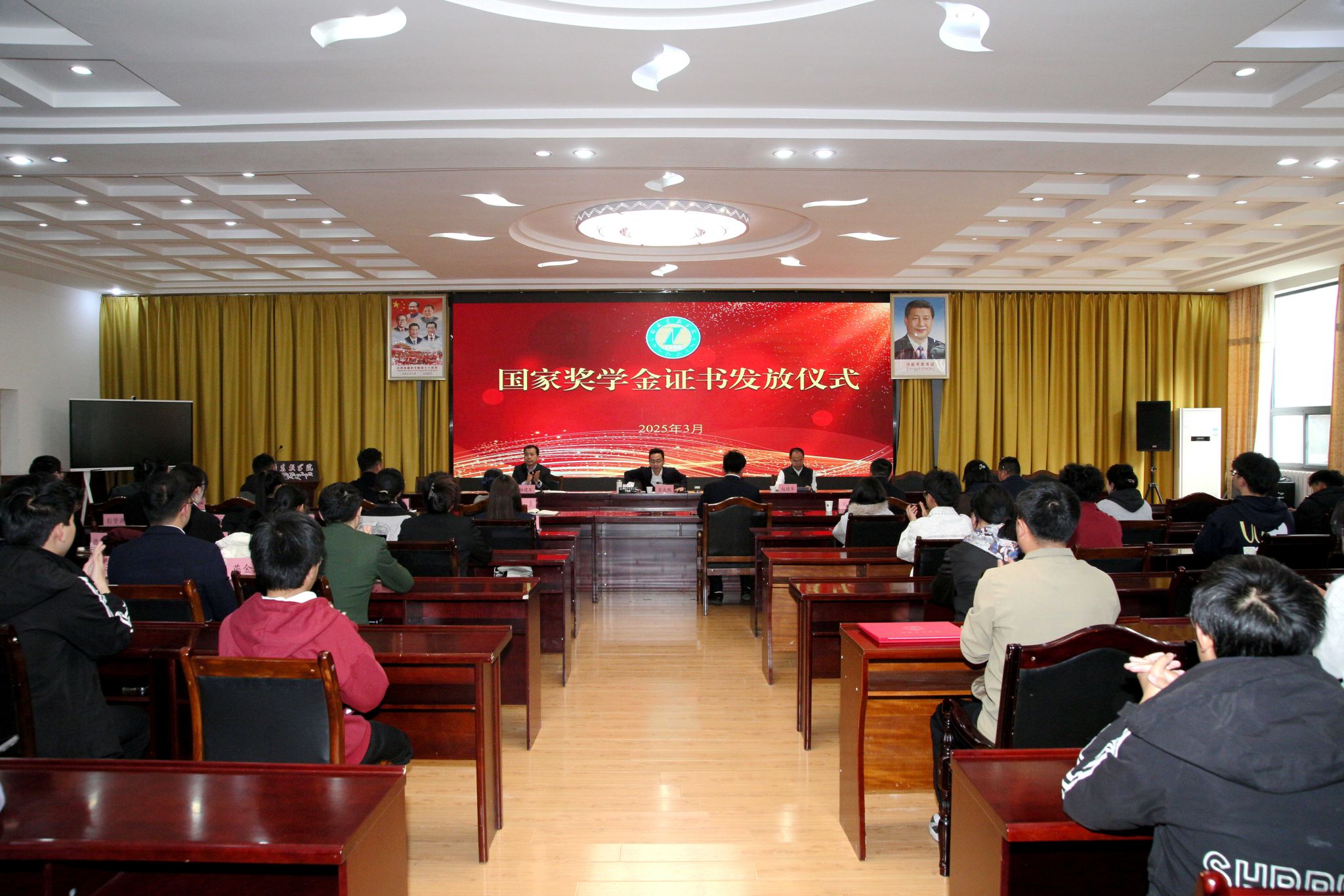 学生工作处副处长杨建军宣读了获奖学生名单,苏大鹏为获得国家奖学金的研究生、本科生学生代表颁发了证书。