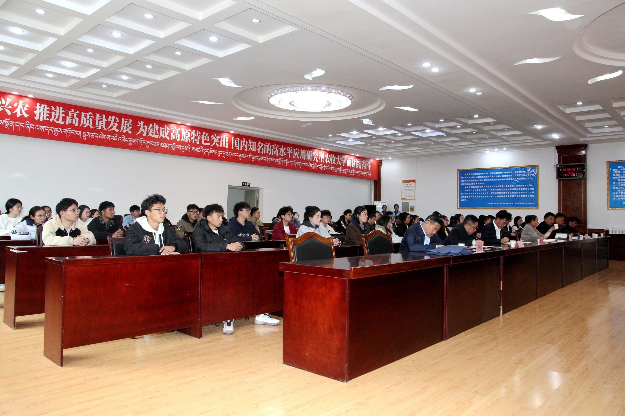 苏大鹏副书记作总结讲话。他向所有获奖的同学表示祝贺,希望受表彰的学生以“一览众山小”的豪情攀登知识高峰,以“饮水思源”的初心回馈社会,并向同学们提出三点希望与要求:一是珍惜荣誉,戒骄戒躁。希望同学们珍惜荣誉,谦逊进取,保持良好的学习状态,以“山外青山楼外楼”的清醒看待成绩,积极向上,不断努力,立志成才;二是勤奋学习,全面发展。希望同学们厚积薄发,用终身学习锻造自身核心竞争力,坚定前行目标,勇于踏浪前行,掌握生存的真本领,为将来发展打下坚实的基础,在全面建设社会主义现代化新西藏进程中贡献自己的力量;三是感恩回馈,传递温暖。“落其实者思其树,饮其流者怀其源”,希望同学们以学校为荣,时刻牢记同伴、学校和西藏自治区给予你们的支持与关怀,将个人理想追求、奋斗目标融入党和国家事业之中,以实际行动反哺社会,成为有家国情怀的栋梁之才。