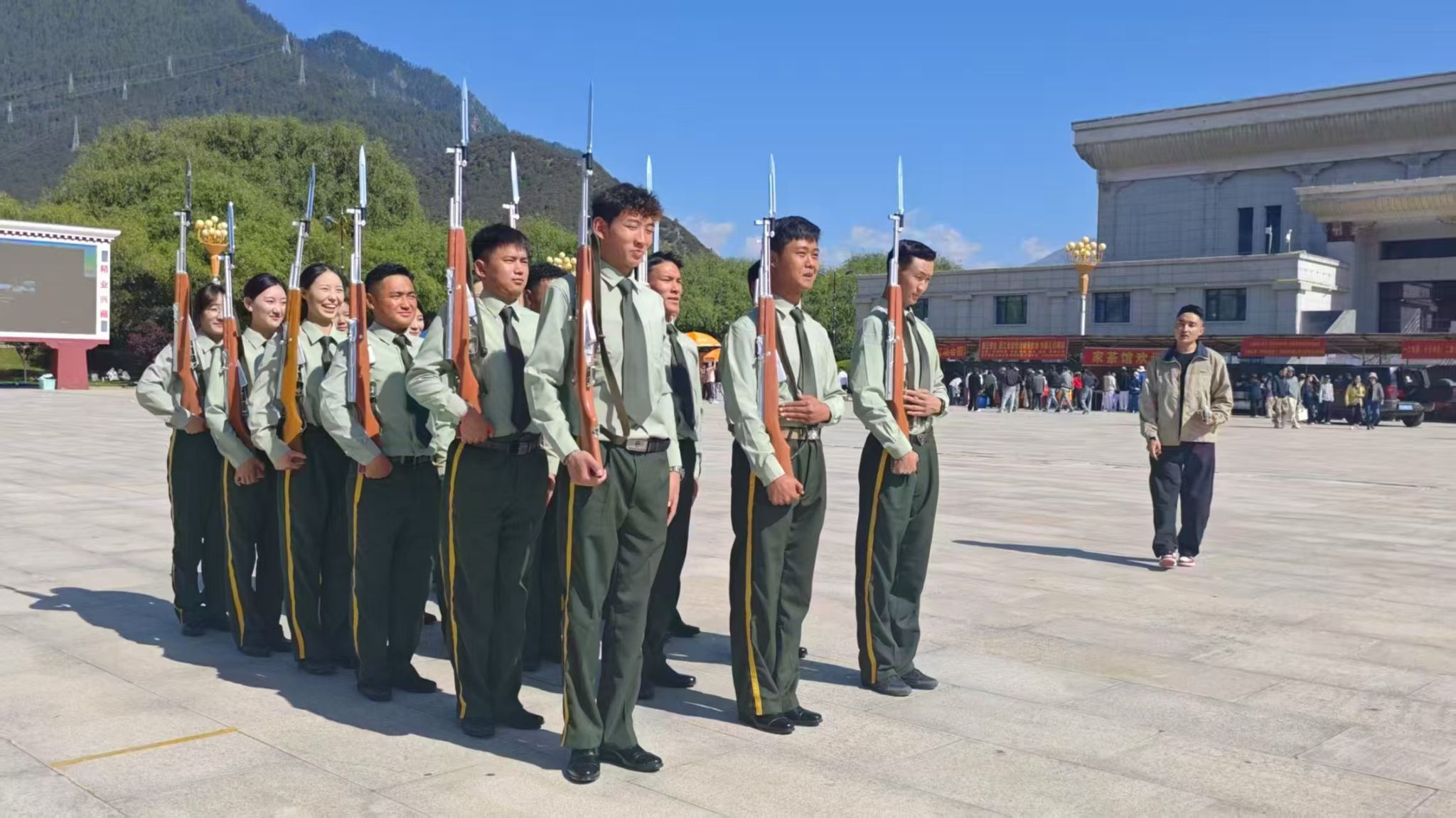 为促进校园国旗护卫队建设经验互鉴,提升爱国主义教育实践水平,6月11日,林芝市高级技工学校国旗护卫队及指导教师一行30人到西藏农牧学院开展观摩学习活动,双方围绕国旗护卫队建设、国防教育等内容深入交流。