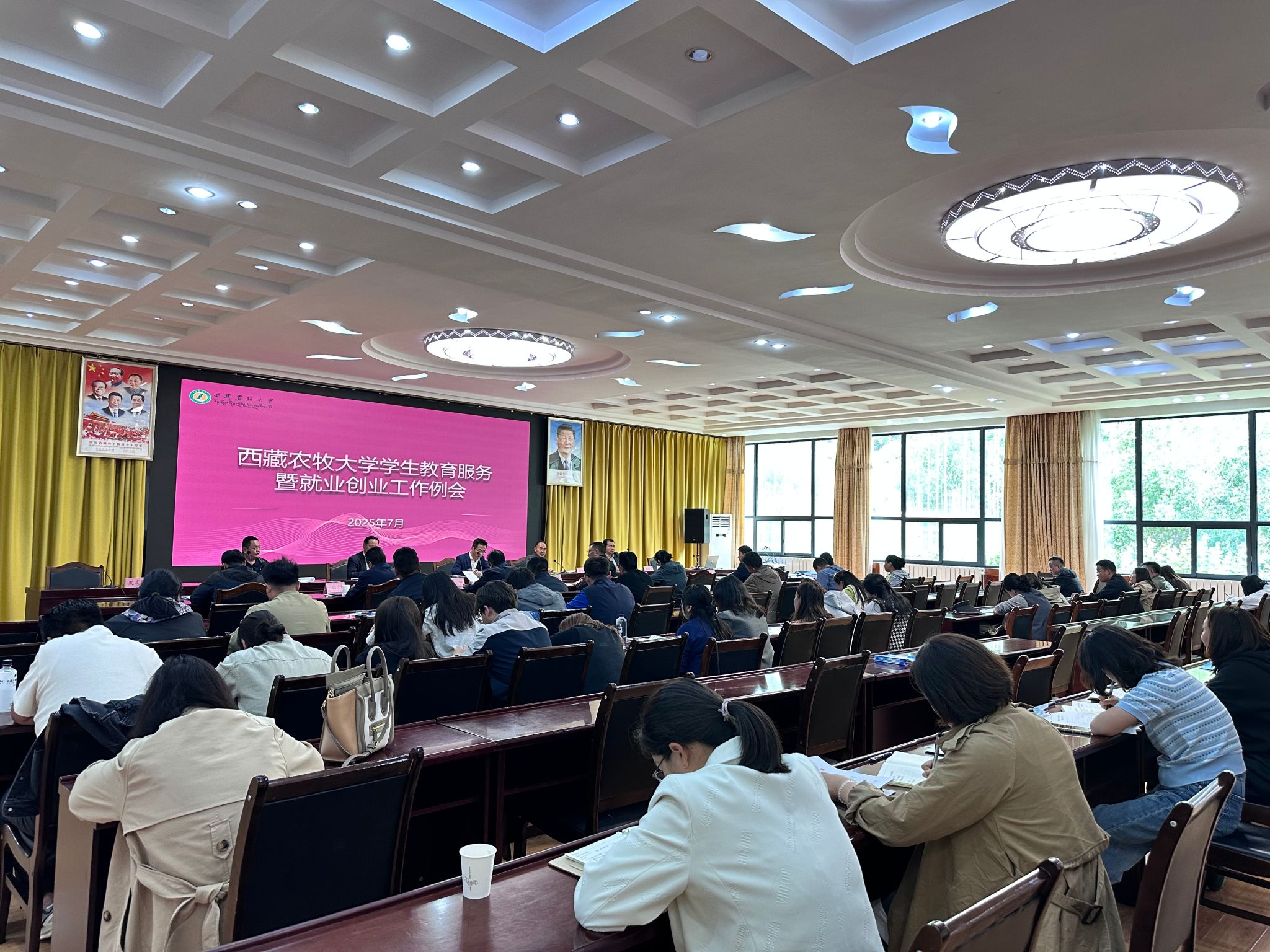 会议分两阶段进行。第一阶段围绕就业工作,植物科学学院、动物科学学院、高原生态研究所负责人汇报通过访企拓岗、就业学生动态回访、线上对接等方式推进就业的工作进展;学生工作部(处)通报了当前各学院(部、所)和各专业的就业率及6月中下旬走访林芝、拉萨的14家单位成果,介绍后勤服务岗、“三助”岗、孵化基地等岗位供给情况,并部署下一阶段工作任务分解和促进措施;苏大鹏要求强化责任落实,坚持就业工作不断线,做好学生就业跟踪服务,创新举措提升就业质量。