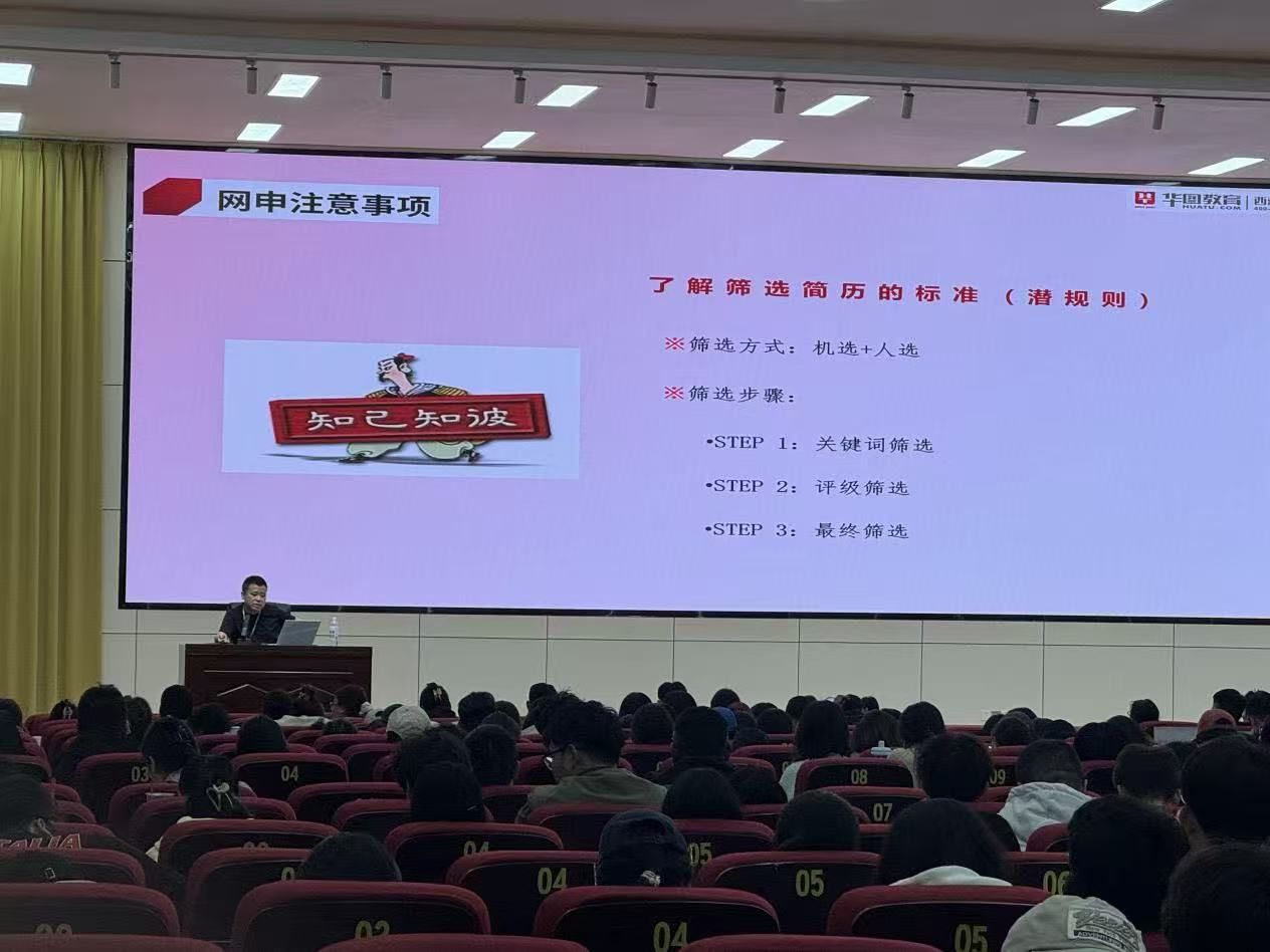 8月20日晚上,欧博邀请华图教育科技有限公司成功举办了一场面向2026届毕业生的国央企就业指导讲座。本次讲座旨在帮助毕业生更好地了解国央企就业形势、掌握招聘流程、提升应聘能力,为其顺利就业提供有力支持。此次讲座共430余名师生参加,现场座无虚席,气氛热烈。