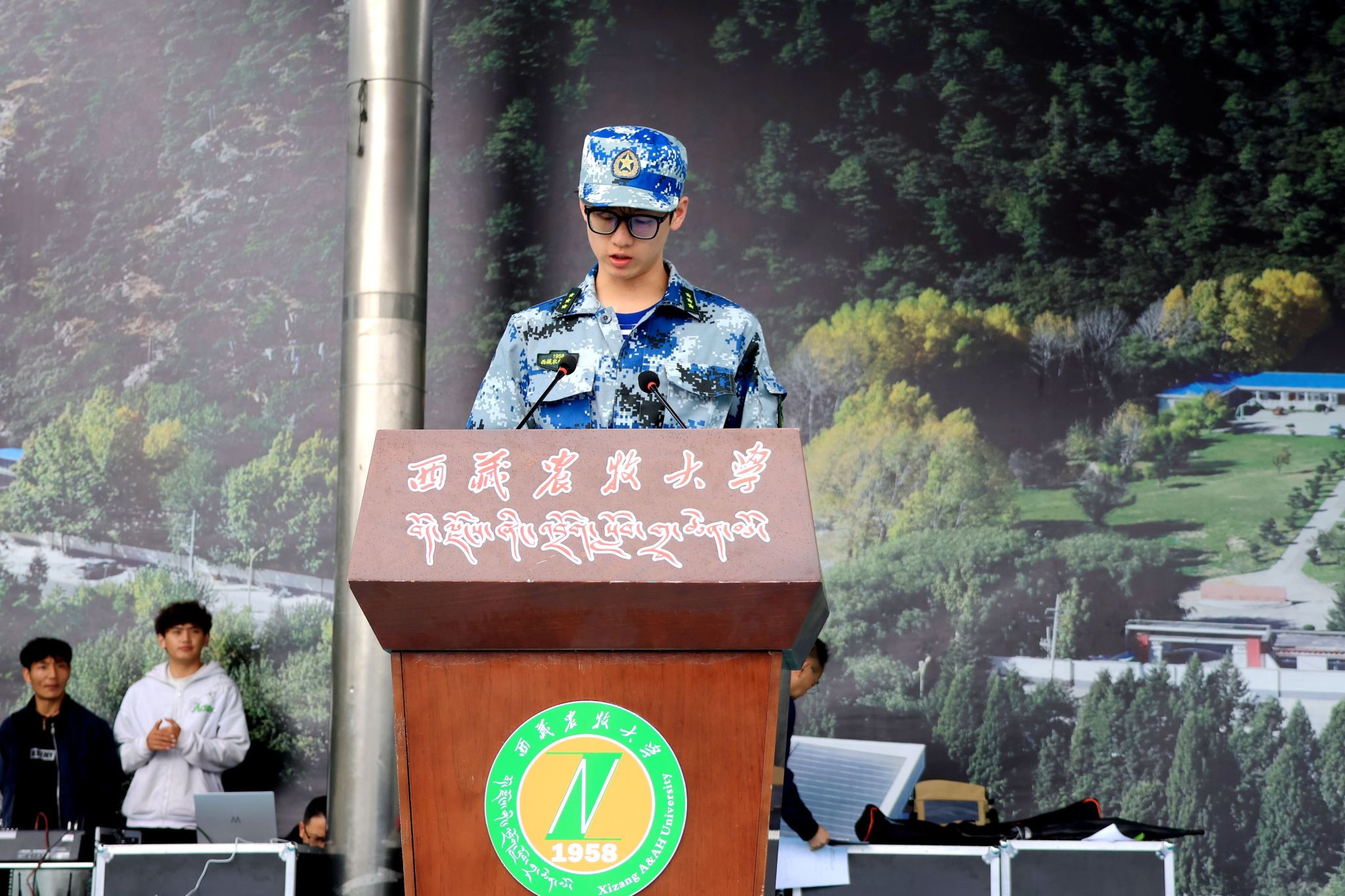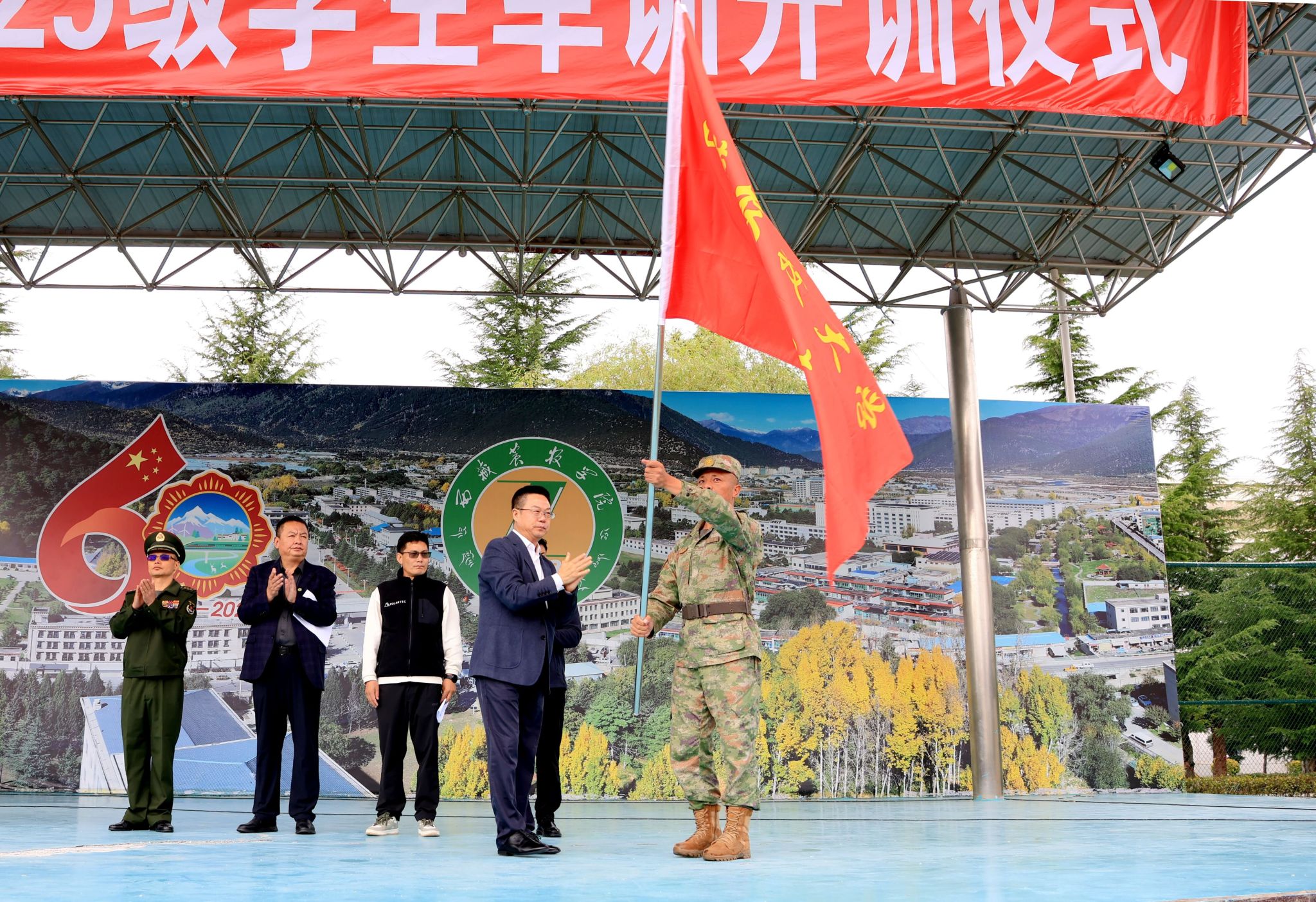 开训仪式上,王程向军训营营长进行了授旗。军训营教导员代表军训工作领导小组宣读《西藏农牧大学学生军训守则》,军训营营长宣读2025级新生军训计划。