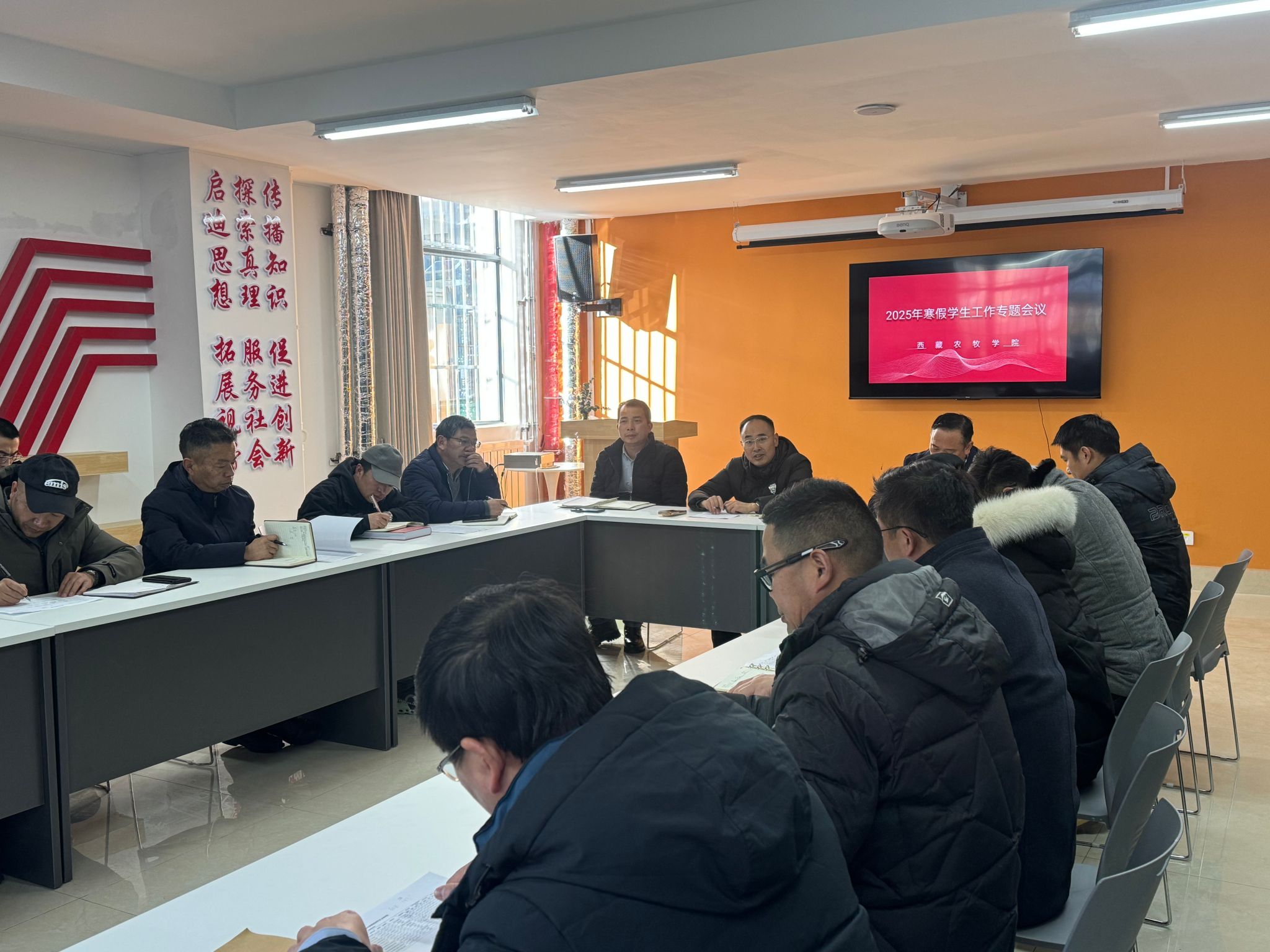 2024年12月19日下午17:00,学生工作处在学生社区知行厅会议室召开了2025年寒假学生工作专题会议,学工处处长赵德军主持会议,学工处班子成员、各二级学院(部、所)分管学生工作同志、寒假值班人员、全体留校学生导师列席。会议上,学生工作处赵德军对寒假工作安排与春季开学工作进行部署。寒假期间,针对17-23日学生离校关键期,强化宿舍管理、精准把控离校动态、防范安全风险提了工作要求。部署值班值守工作,掌握学生行程动态,推进家校联系。...
