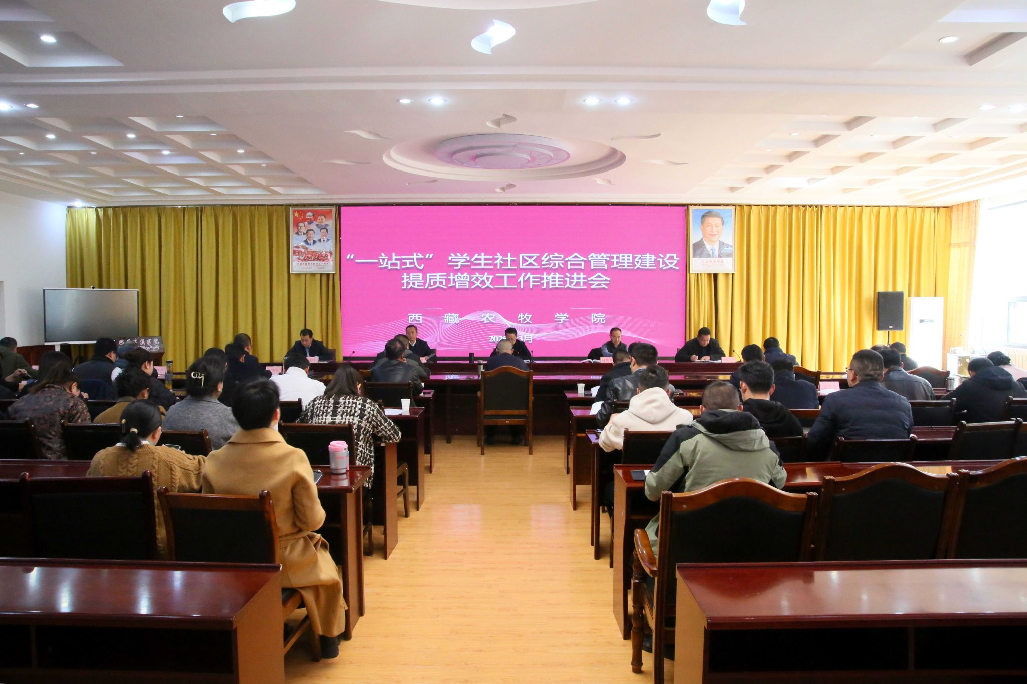 为深入落实“三全育人”理念,推进“一站式”学生社区综合管理建设进一步提质增效,2025年3月18日,西藏农牧学院在一号办公楼中心会议室召开“一站式”学生社区综合管理建设提质增效推进会。校党委副书记王程出席会议,各职能部门主要负责人、办公室负责人,各教学单位书记(副书记)、学生科负责人,学生社区县处级楼长及学生楼长代表,学生工作处全体人员参加会议。会议由学生工作处处长赵德军主持。会上,赵德军结合深入贯彻中央八项规定精神学习教育及有关案例,...