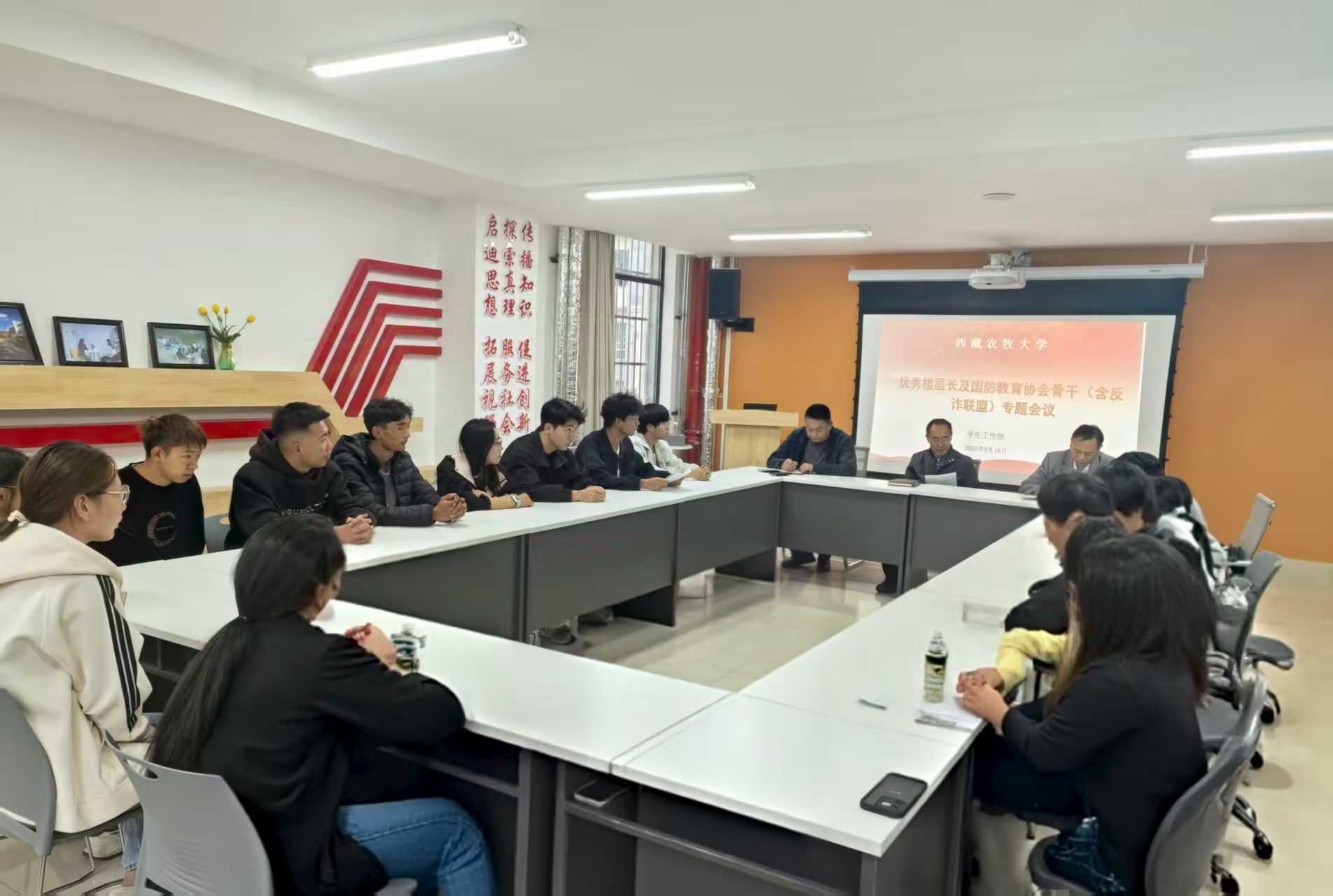 为进一步提升国防教育水平,强化学生宿舍管理,推进反诈宣传工作,8月18日,学生工作部(处)在20栋公寓楼知行厅召开学生公寓楼层长及国防教育协会成员工作会议。学生工作部(处)班子领导和部分科室负责人、各公寓楼层长和国防教育协会成员参加会议。会议由学生工作部(处)副部长李新堂主持。会议围绕“深化国防教育、优化宿舍服务、筑牢安全防线”展开交流,强调要将国防教育、宿舍安全与服务等融入日常学生管理,要求楼层长切实履行职责,...