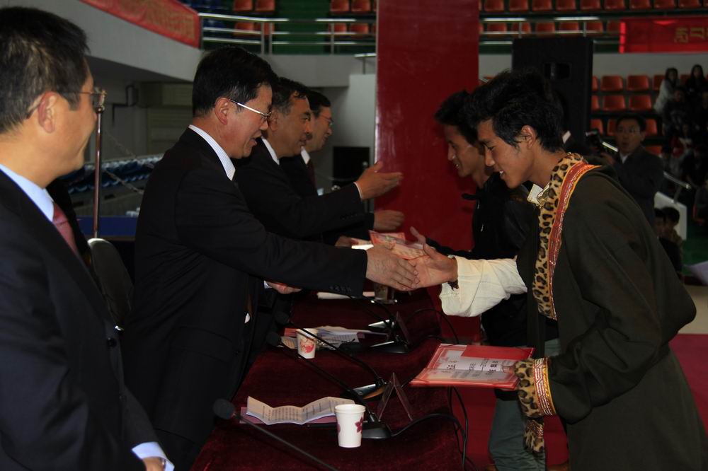 校党委书记、副校长桑珠同志为获得三好学生、单项荣誉奖、优秀毕业生的...