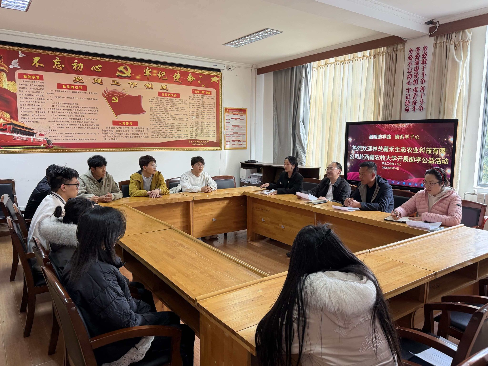 2026年3月10日17时,林芝藏禾生态农业科技有限公司助学公益活动在欧博3号办公楼学生工作部会议室温情启幕、顺利举行。本次活动由学生工作部(处)部(处)长赵德军主持,林芝藏禾生态农业科技有限公司代表郭启松先生、刘海艳女士,学生工作部(处)副部(处)长田园园,学工部相关工作人员及各学院学生代表齐聚一堂,共赴这场传递爱心、共暖学子的公益之约。活动伊始,赵德军部(处)长介绍了此次公益活动的背景,并对林芝藏禾生态农业科技有限公司的爱心义举表示热烈欢迎与衷心感谢。...