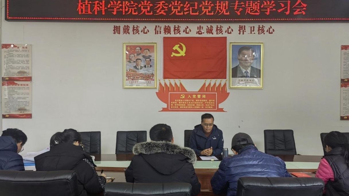 为进一步深入学习贯彻习近平总书记关于党的自我革命的重要思想,在党委党纪党规专题学习会议中进一步加强理论学习,强化全体党员特别是领导干部的政治纪律和政治规矩意识,推进全面从严治党走向深入,2024年4月3日上午11:00,植科学院党委在二号教学楼四楼党员活动室召开植科学院党委党纪党规专题学习会,以集中学习和分享交流的形式开展了学习习近平总书记关于党的自我革命的重要思想、解读《中国共产党纪律处分条例》、学习《中国共产党党员网络行为规定》和《事业单位工作人员处分规定》的学习会,学习会由党委书记达瓦主持,党委委员、党支部委员、党员代表参加了学习会。