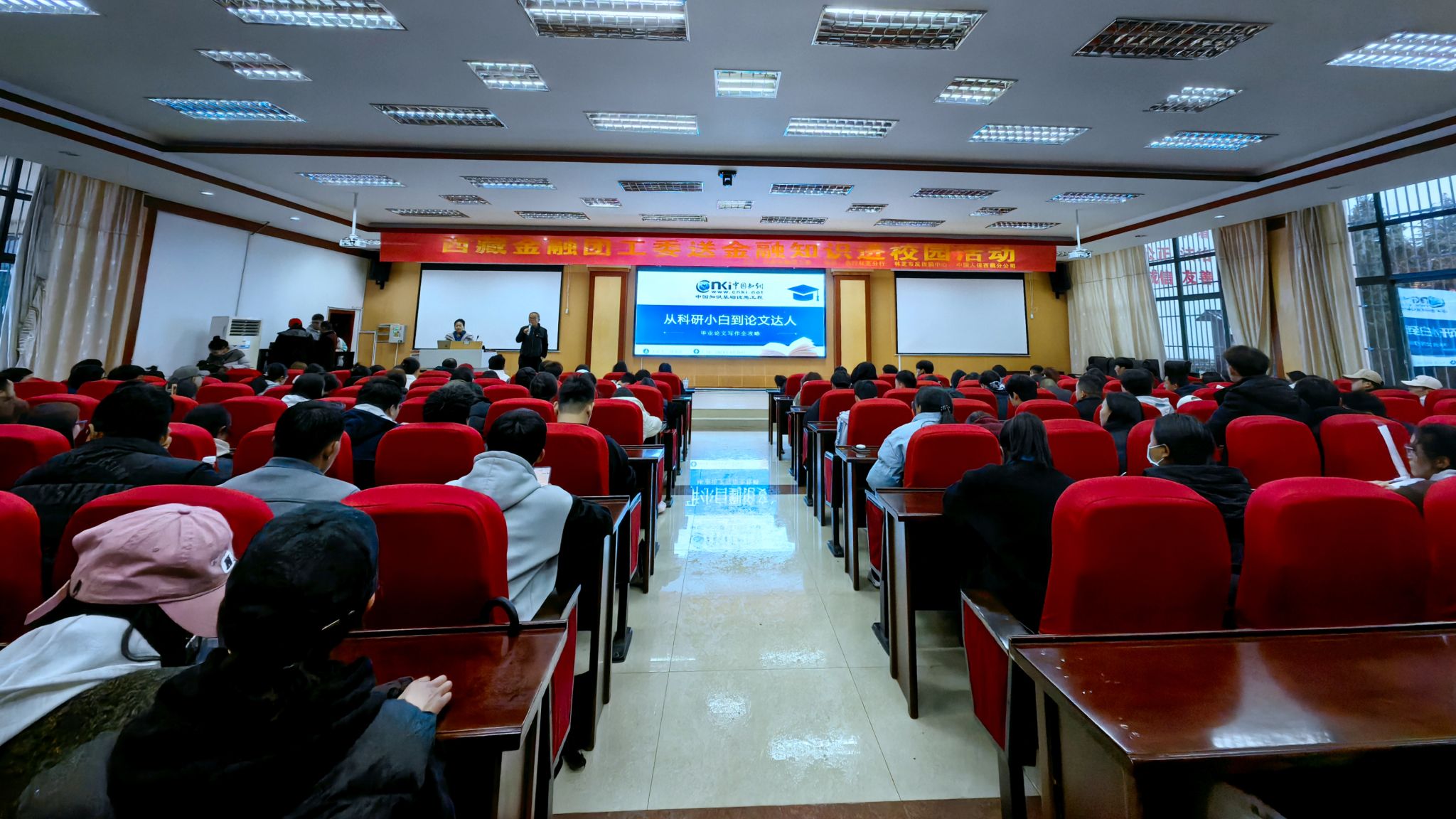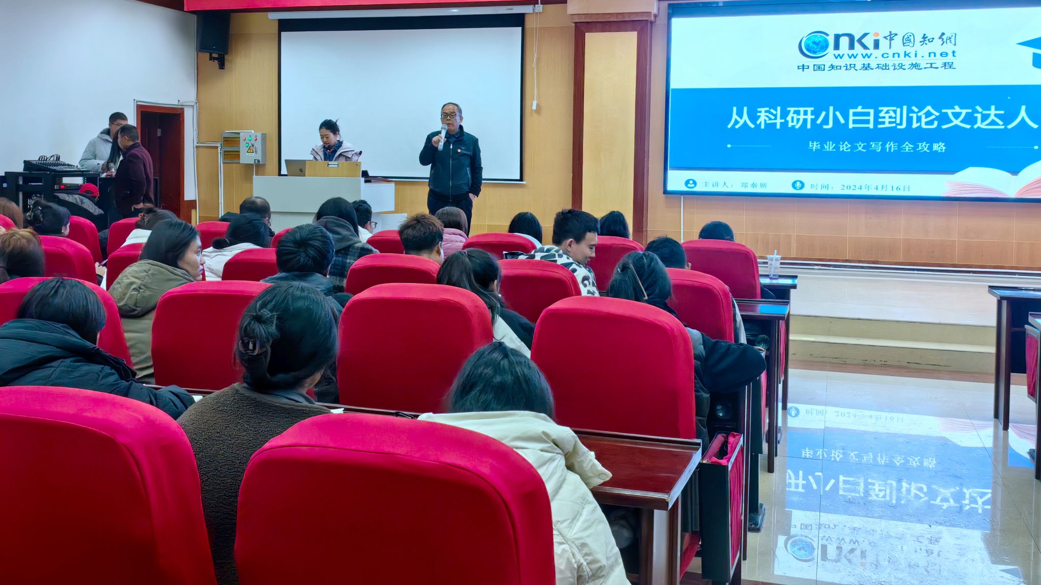 本次讲座一个小时。在讲座中,中国知网培训讲师郑秦妍针对如何利用知网撰写毕业论文做了专题报告。报告主要包括三部分内容,第一部分是认识论文,主要介绍了论文的分类、论文的基本特征、学位论文准备流程等;第二部分学术资源检索,重点介绍了常见学术资源类型、常用数据库、中国知网使用方法;第三部分论文写作基本方法,围绕高效阅读技巧、论文写作规范、论文排版、论文格式检查这四个方面做了详细讲解。