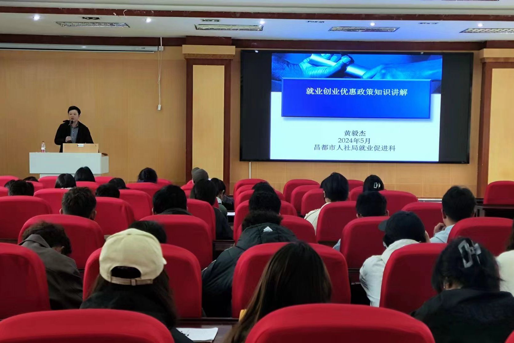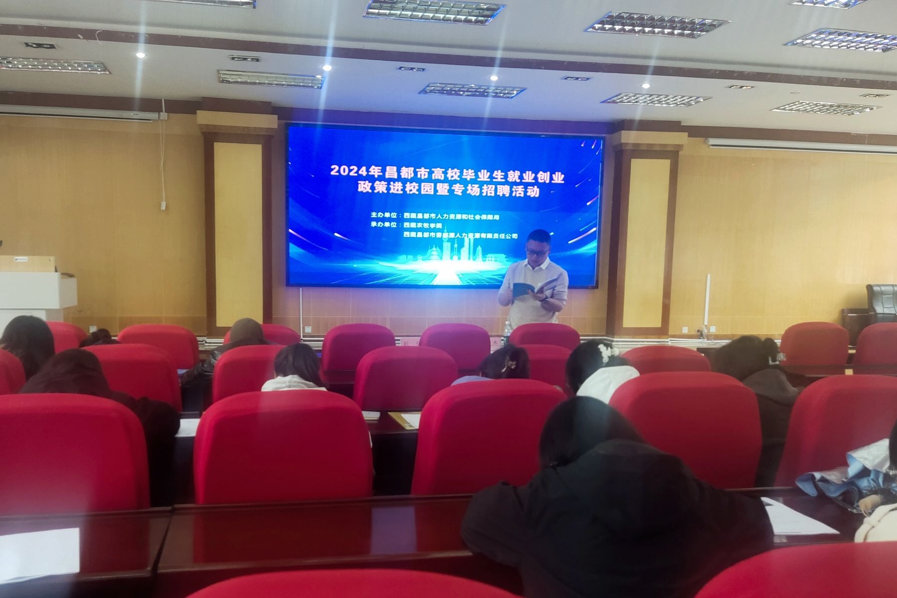 毕业季来临之际,为进一步加大高校毕业生就业创业政策宣传力度,提高政策知晓度,进一步深化高校毕业生就业创业政策宣传成效,促进昌都籍应届高校毕业生毕业与就业有效衔接,5月15日上午,由昌都市人力资源与社会保障局主办,西藏农牧学院和昌都市雾都源人力资源服务有限责任公司承办的“2024年昌都市高校毕业生就业创业政策进校园暨专场招聘活动”在我院研究生苑学术报告厅举办。昌都市人社局就业促进科黄毅杰和昌都市雾都源人力资源服务有限责任公司负责人刘俊一行人为欧博100余名昌都籍应届高校毕业生进行政策宣讲,同时还提供了320个岗位信息,开展了现场招聘活动。