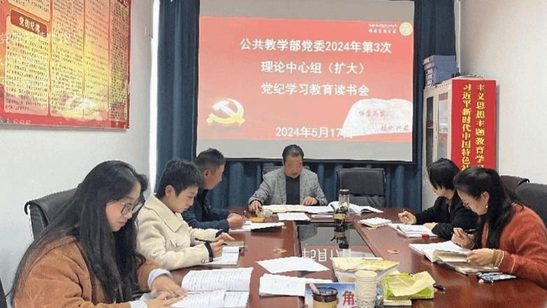 公共教学部党委于5月17日召开2024年第3次党委理论中心组(扩大)党纪学习教育读书会,会议由部党委书记衡思泉主持,各党支部书记、委员参加了学习会。