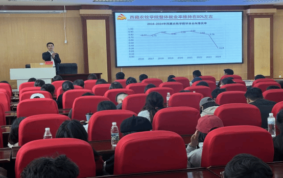 为了进一步促进植科学院2024届毕业生就业创业工作,教育引导毕业生积极转变就业创业观念,分析掌握当前严峻就业形势,宣讲党和国家积极、优惠的就业创业政策,进一步促进未就业毕业生早日实现就业,经过植科学院的精心准备、周密安排,2024年6月7日下午,学院特邀学校党委副书记、副院长、联系植科学院校级领导苏大鹏同志为学院2024届毕业生宣讲就业创业教育,植科学院党委书记达瓦等全体班子成员、分管就业辅导员次仁旺姆、全体毕业生参加了宣讲会。