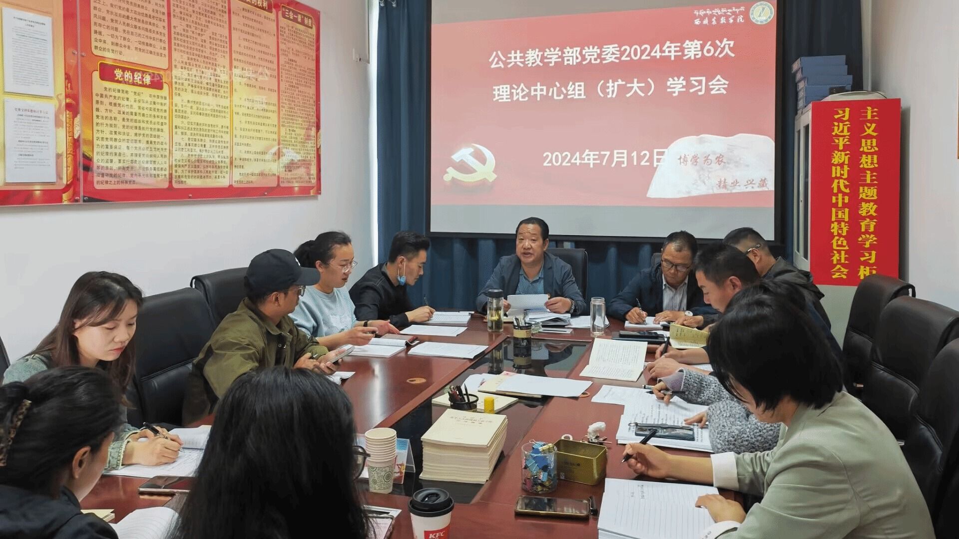 为推进党纪学习教育走深走实,严明政治纪律和政治规矩,2024年7月12日上午,公共教学部组织召开党委2024年第6次理论中心组(扩大)学习会,会议由部党委书记衡思泉主持,部班子成员、各党支部书记、支部委员参加了学习会。