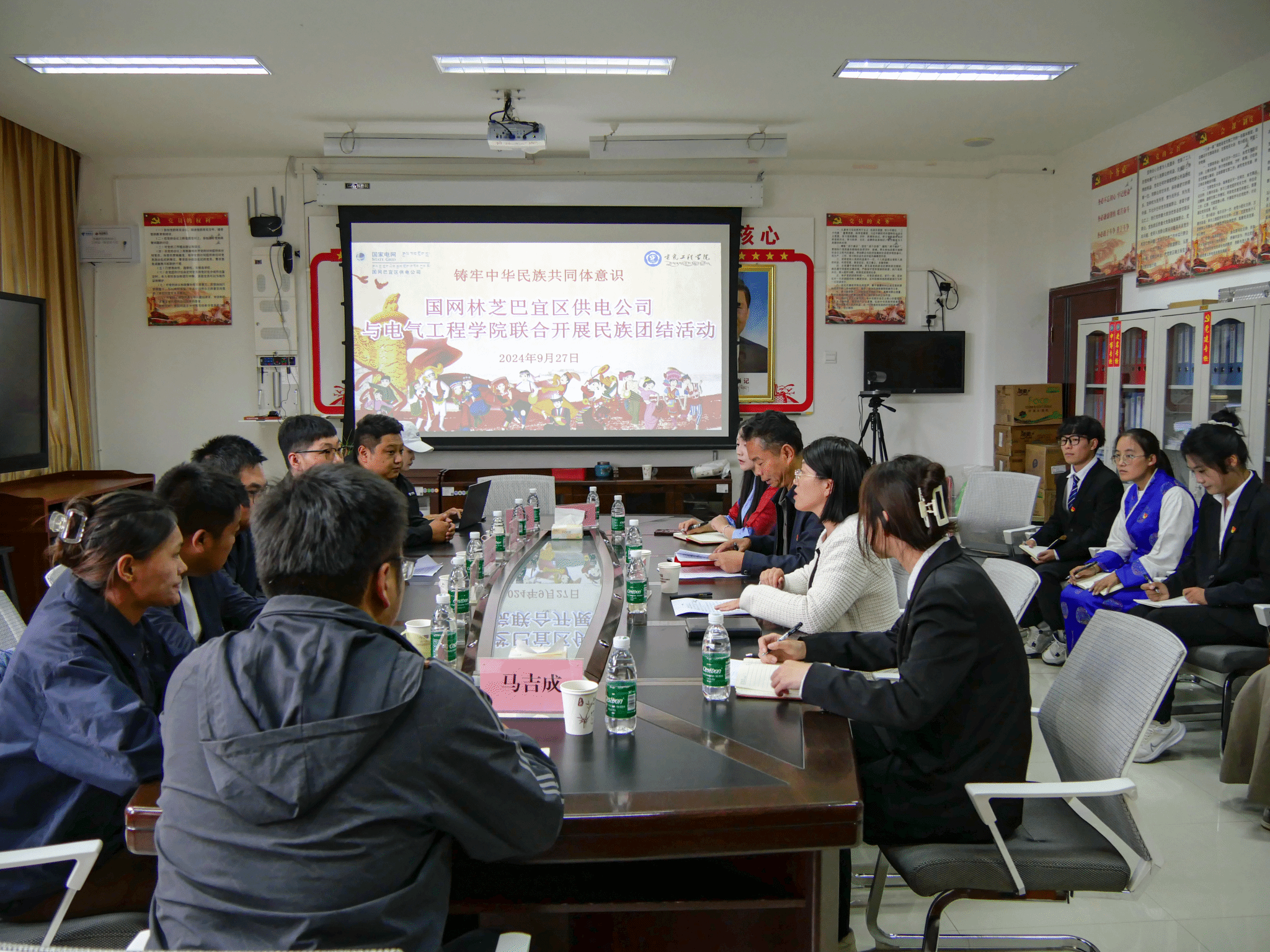 为深入学习贯彻习近平新时代中国特色社会主义思想,推进中国式现代化进一步全面深化改革,铸牢中华民族共同体意识,我院于2024年9月27日与巴宜区供电公司联合举办“民族团结心凝聚,电力校园共前行”为主题党建活动,本次活动由学院教工第二党支部书记、电气工程学院副院长吴红梅主持,电气工程学院党委副书记普布次仁,国网巴宜区供电公司党支部书记、总经理周晓康,供电服务中心副主任李润涛,次仁多吉,罗布西洛,吴玖辉,尼玛,次仁玉珍,马吉成,以及25名学生代表参与。