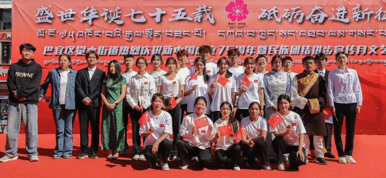 为隆重庆祝中华人民共和国成立75周年,进一步深化爱国主义教育,增强各民族的国家荣誉感和民族自豪感,促进校地之间的文化交流与合作,资源与环境学院团总支副书记蒋华伟于9月30日带领团总支二十多名成员至十二生肖广场参加巴宜区觉木街道庆祝新中国成立75周年暨民族团结进步宣传月文艺汇演活动。