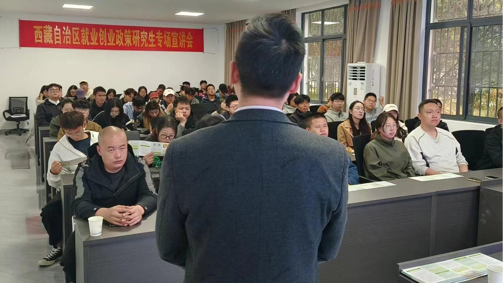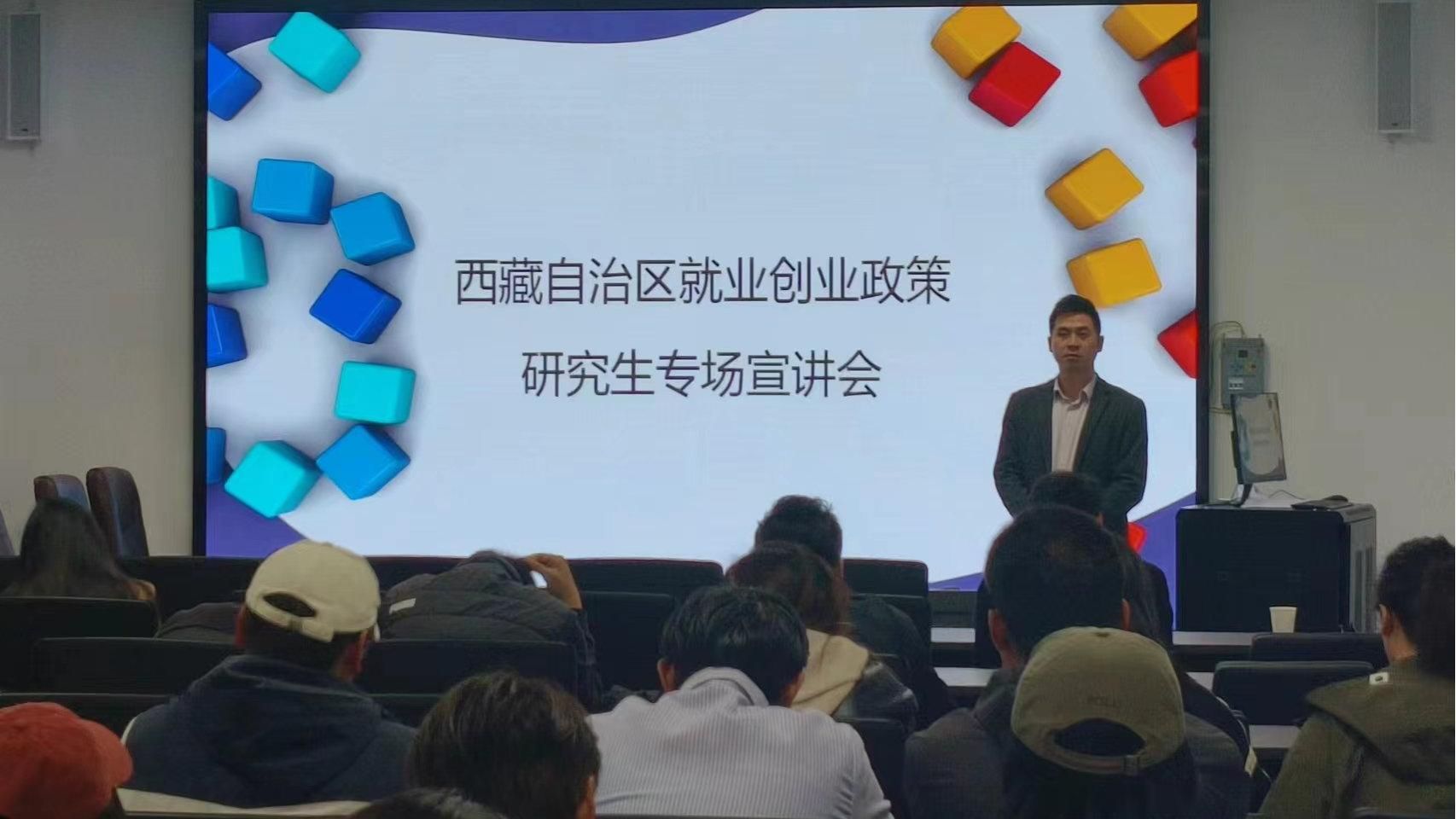 为进一步推进落实高校毕业生等青年就业创业政策,指导2025届研究生毕业生明确就业目标,增强创新创业意识,加大就业创业扶持政策宣传力度,给求职者和创业者提供更坚实的政策支持。2024年10月11日,我院在招生就业处1楼会议室举办西藏自治区就业创业政策研究生专场宣讲会。67名2025届硕士研究生参加了此次宣讲会。此次会议由招就处和林芝市人社局共同举办。