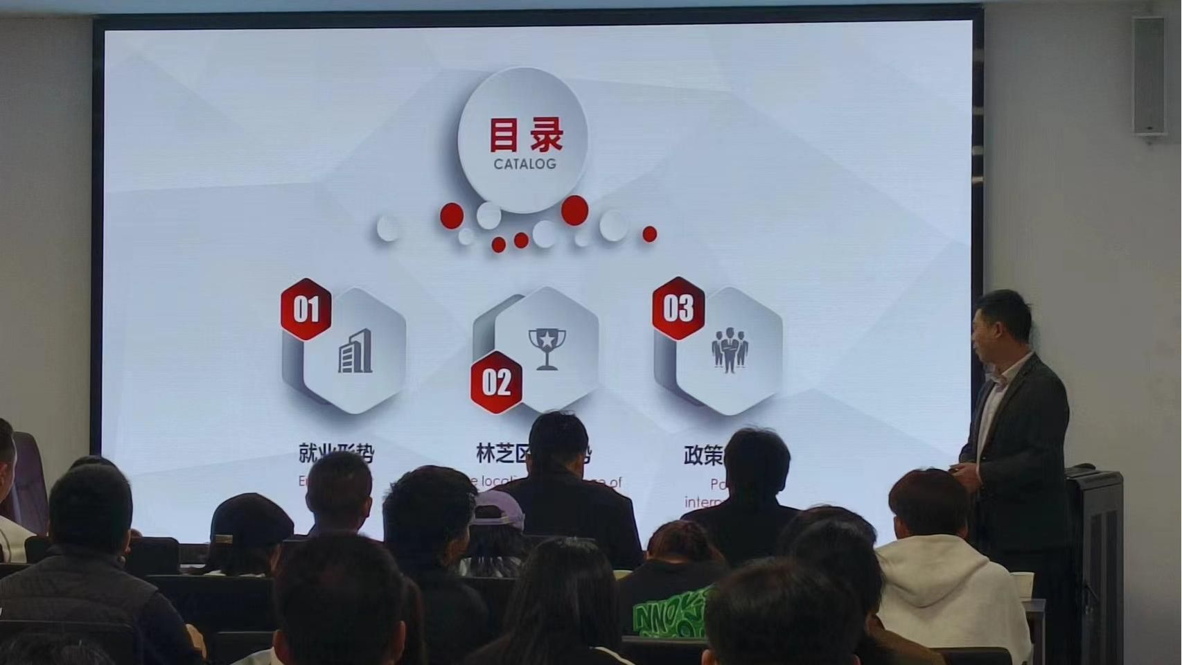 宣讲会上,林芝市人社局夏东升主任主要从两方面进行讲解。一是讲政策。阐述了各类创业项目可享受的扶持政策,包括创业启动资金支持、经营场地租赁费用、水电费补贴、职业技能培训等,这些政策的宣讲极大激发了毕业生的创业热情和创新精神。针对返乡创业补贴,强调了家乡对高校毕业生返乡创业的重视和支持,为有意愿返乡创业的毕业生提供了有力政策保障;二是转观念。通过宣讲了解了高校毕业生就业观念及就业动态,并分析高校毕业生就业去向、就业理念,鼓励高校毕业生市场就业、自主创业和区外就业,进一步转变高校毕业生及家庭的择业观,引导树立“先就业 后择业”的就业观念。