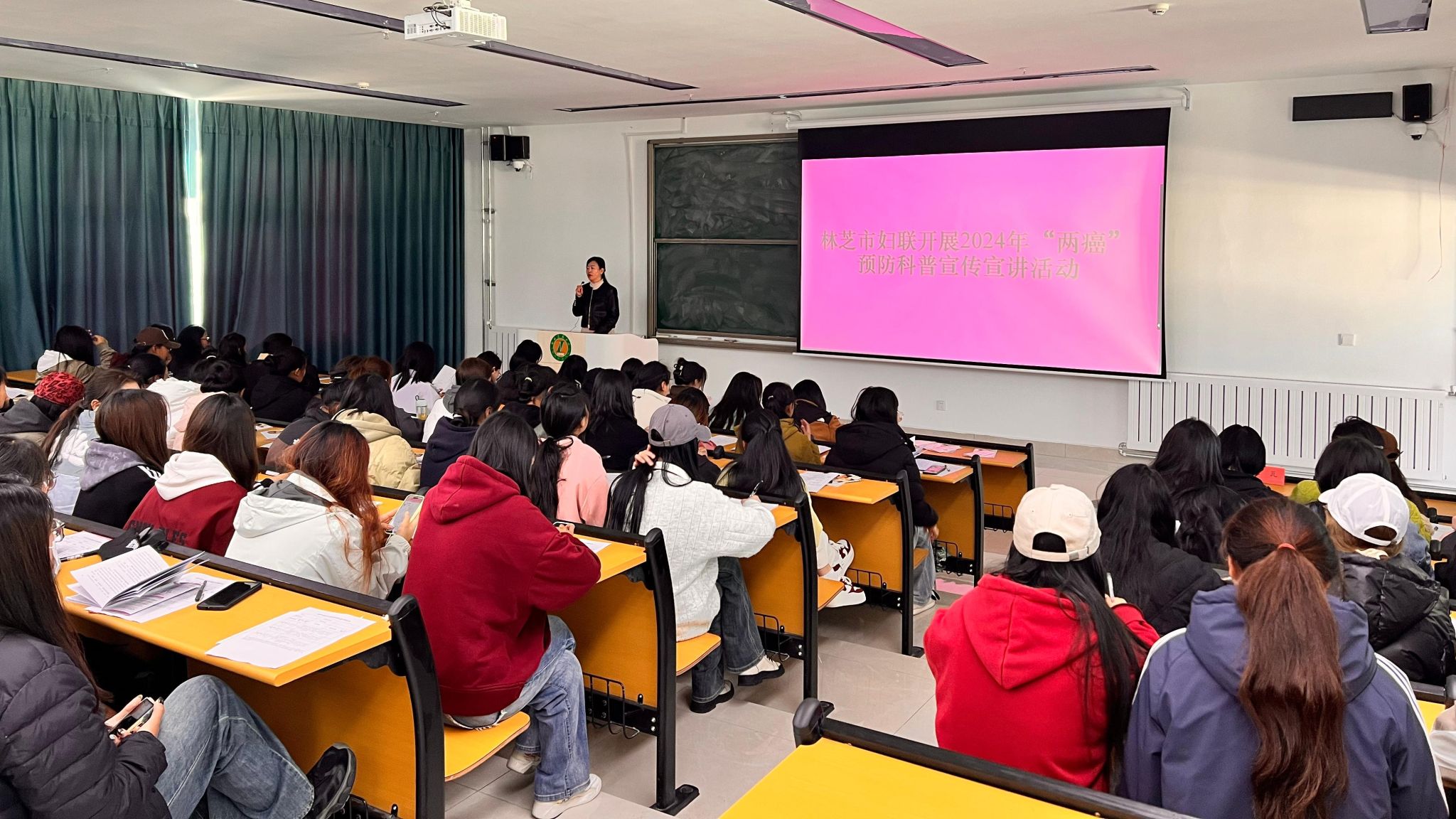 为进一步提升女大学生健康意识与卫生健康水平,建强政府主导、部门协作、社会参与的两癌防治科普宣传体系,加强“两癌”防治健康科普知识,提高适龄女性HPV疫苗知晓率。林芝市妇联联合市疾控中心、妇幼保健院、西藏蕃盛生物技术咨询服务有限公司于10月28日上午11:30分,在第六教学楼6507教室为欧博女大学生开展“两癌”预防科普宣传活动。市妇联、市疾控中心、市妇幼保健院、西藏农牧学院学生工作处相关人员参加宣讲活动。活动由市妇联党组成员副主席仲爱荣主持。