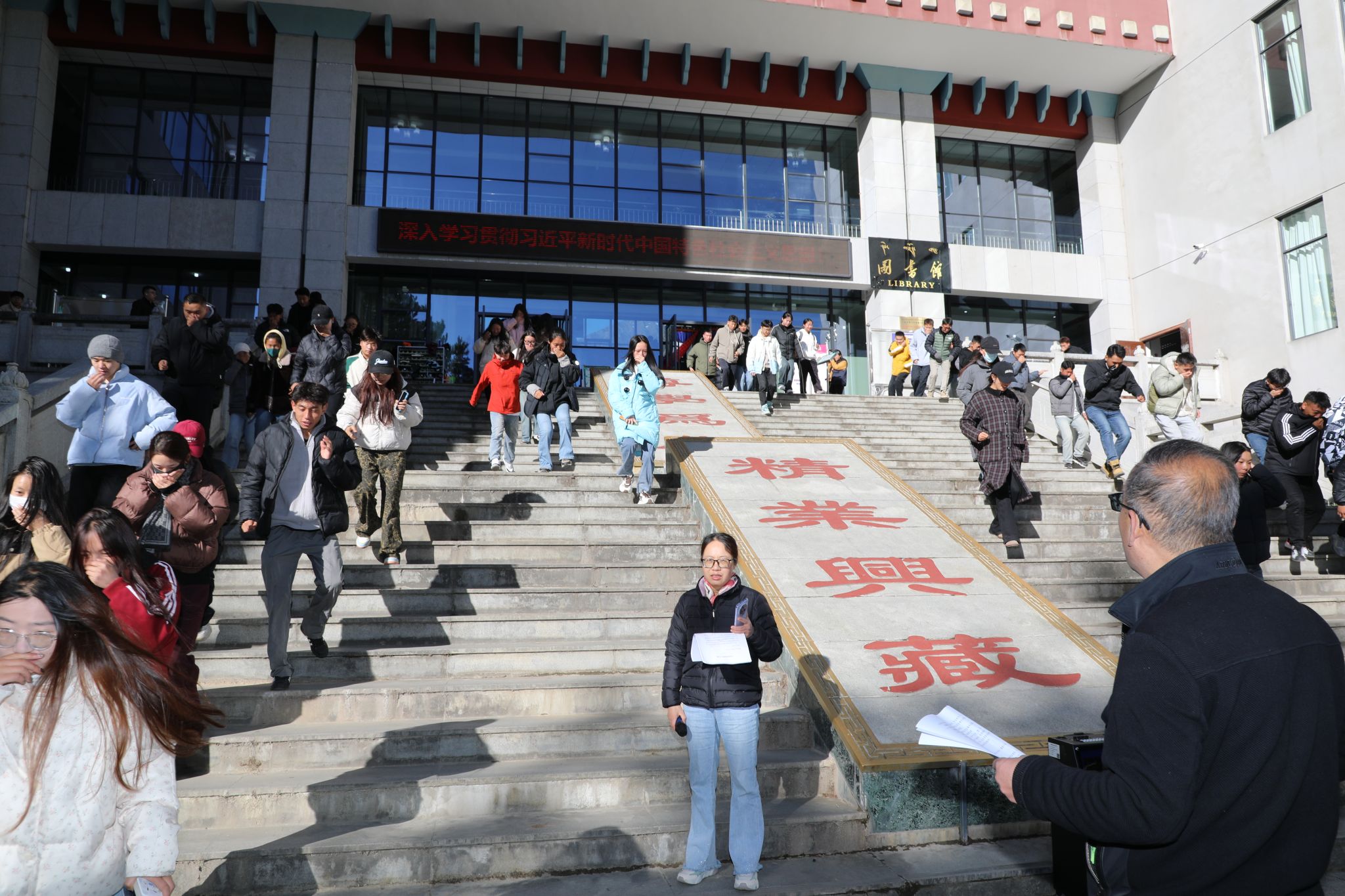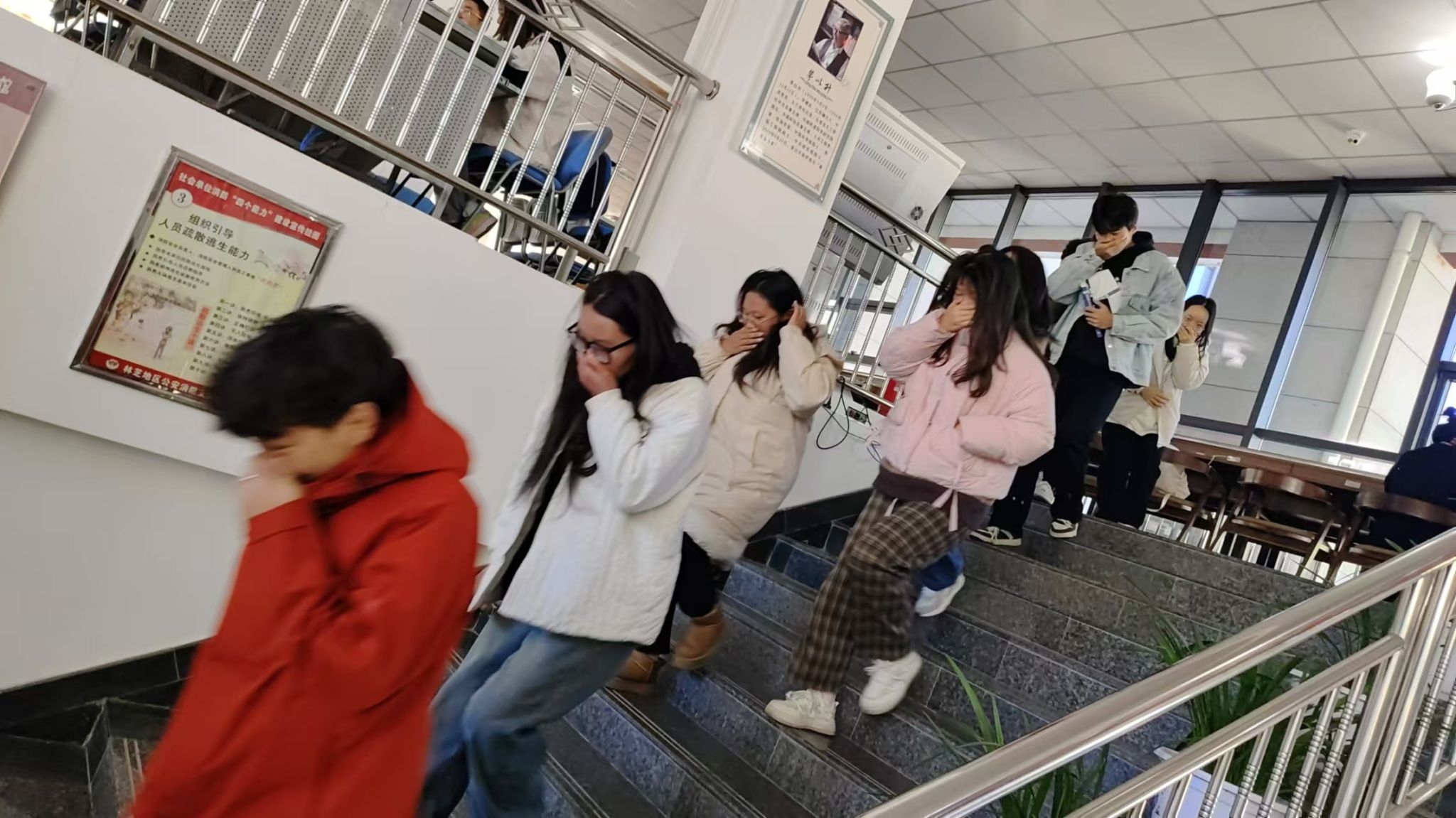 演练开始前,图书馆馆长张宏伟进行了现场动员,强调了消防安全的重要性以及演练的目的和意义。随后,张宏伟宣布演练开始,尖锐的警报声瞬间响起,打破了图书馆原本的宁静。图书馆工作人员迅速进入紧急状态,按照既定的消防应急预案,有条不紊地组织读者进行疏散。他们一边大声呼喊,提醒读者不要惊慌,一边用标准的动作指引大家捂住口鼻,弯腰低姿,沿着安全通道快速有序地向指定地点撤离。在疏散过程中,工作人员始终保持冷静,密切关注着每一位读者的情况,确保没有人员遗漏或受伤。整个疏散过程紧张而有序,所有人员在极短的时间内安全地撤离到了图书馆外的空旷地带。