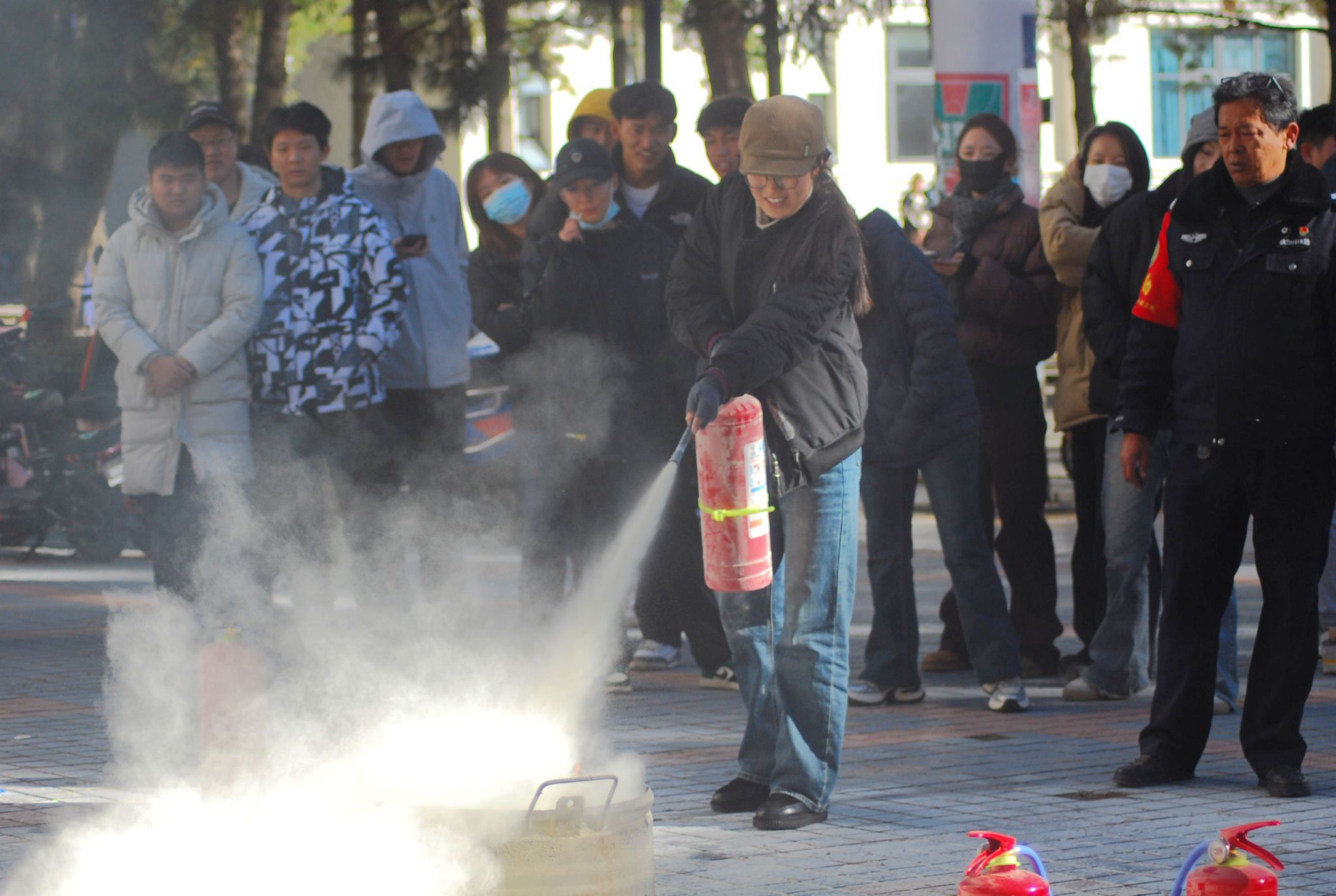 疏散完成后,安全保卫处工作人员罗宝琦为大家详细讲解灭火器的种类、适用范围以及正确的使用方法。通过生动的案例和直观的演示,让大家深刻认识到灭火器在火灾初期扑救中的重要作用。随后,进行了灭火器实操演示,只见工作人员熟练地拿起灭火器,按照“一提、二摇、三拔、四压”的操作步骤,迅速将熊熊燃烧的火焰扑灭。在场的读者和工作人员纷纷跃跃欲试,在专业人员的指导下,依次上前进行灭火器的实际操作体验。通过亲身体验,大家更加熟练地掌握了灭火器的使用技巧,增强了应对火灾的实际操作能力。