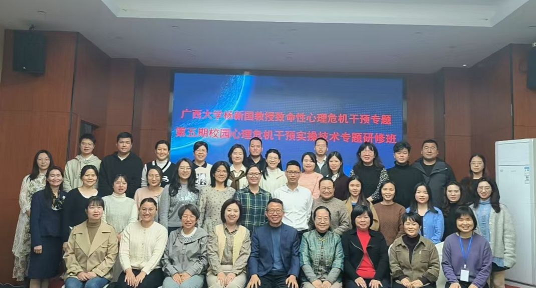 为了提升欧博心理危机干预的应变能力和技术实操能力,着力提升欧博心理健康工作科学化、规范化水平,切实贯彻教育部办公厅《关于加强学生心理健康管理工作通知》与教育部17委关于《全面加强和改进新时代学生心理健康工作专项行动计划》的工作要求和精神。2025年1月17日-19日,学生工作处大学生心理咨询中心组织心理中心专职老师胡俊、食品科学学院辅导员赵家顺、公共教学部班主任李婉茹参加了广西大学杨新国教授开展的“第五期校园危机干预实操技术专题研修班”。