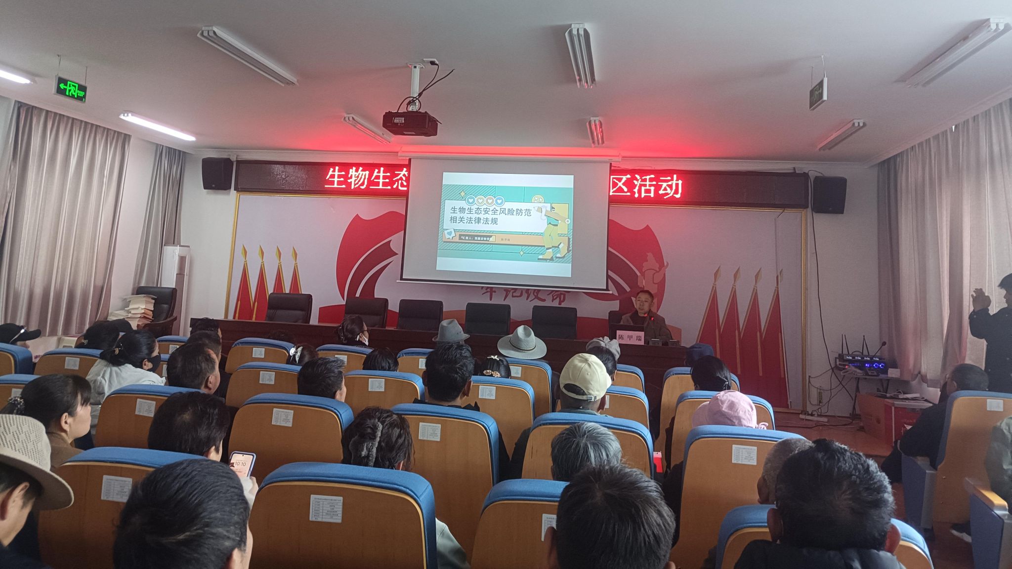 西藏农牧学院高原生态研究所生物入侵团队陈甲瑞老师受邀参加了此次培训活动并以“外来入侵物种防治”主题,通过图文等形式,向林芝市和巴宜区生物生态保护重点单位、白玛岗街道共计200余干部群众,讲解区内莲子草、曼陀罗等14类农业重点防控外来入侵物种的危害、识别方法及防治措施。陈老师结合本地生态特点,呼吁公众“不能随意携带不明生物入境”,要求时刻保持高度警惕,防治外来物种入侵,教育引导群众增强防控外来物种的意识,鼓励居民成为“生态安全哨兵”。