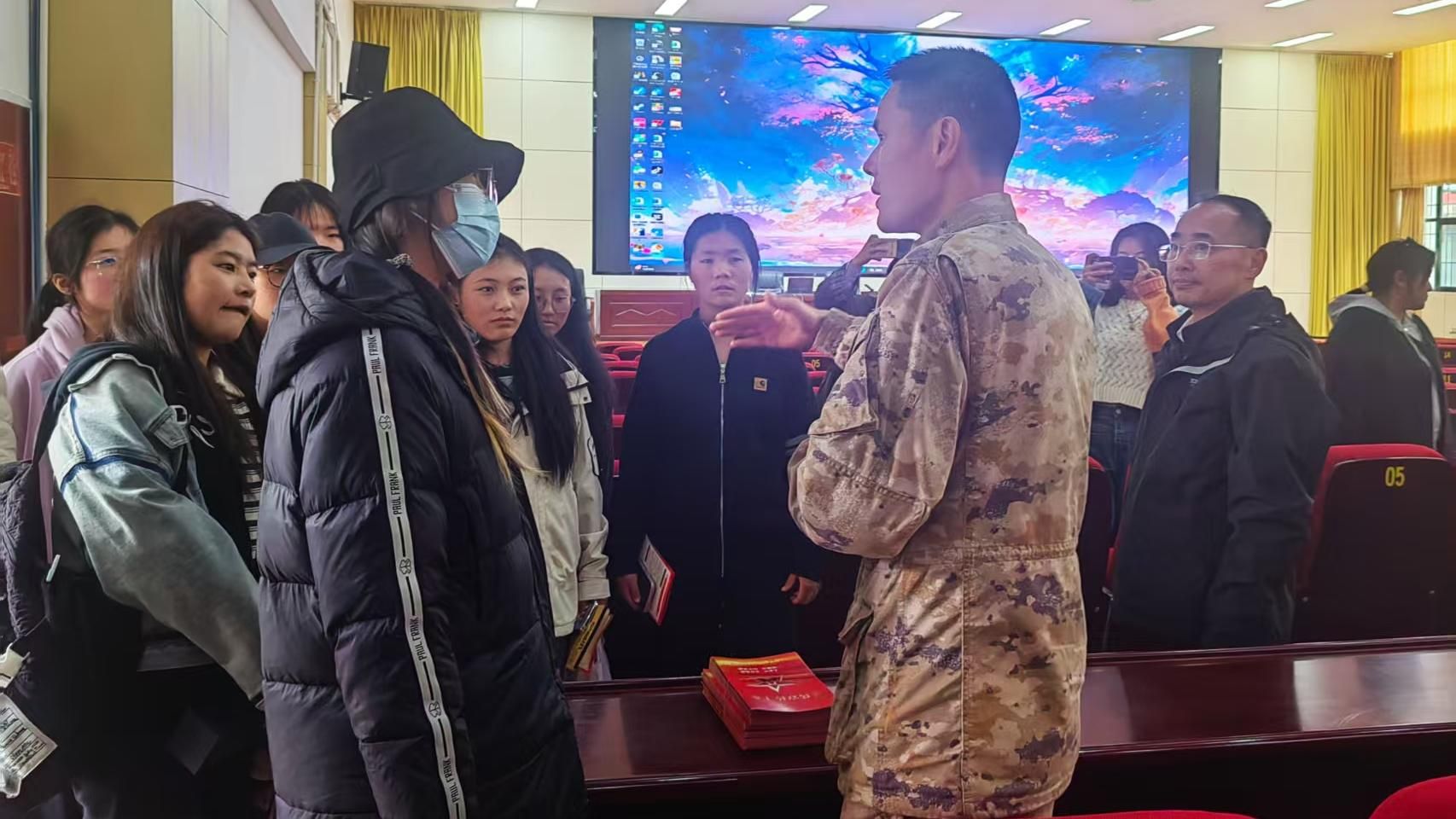 活动现场,征兵工作人员通过发放宣传资料的方式,营造浓厚的征兵宣传氛围。巴宜区杨忠义科长解读军队发展历程、军人待遇保障、征兵政策等方面,并为学生们详细讲解征兵条件、报名流程、优惠政策等内容,重点介绍大学生入伍在学业资助、升学就业等方面的优待政策,让学生们对参军入伍有了更清晰、全面的认识。