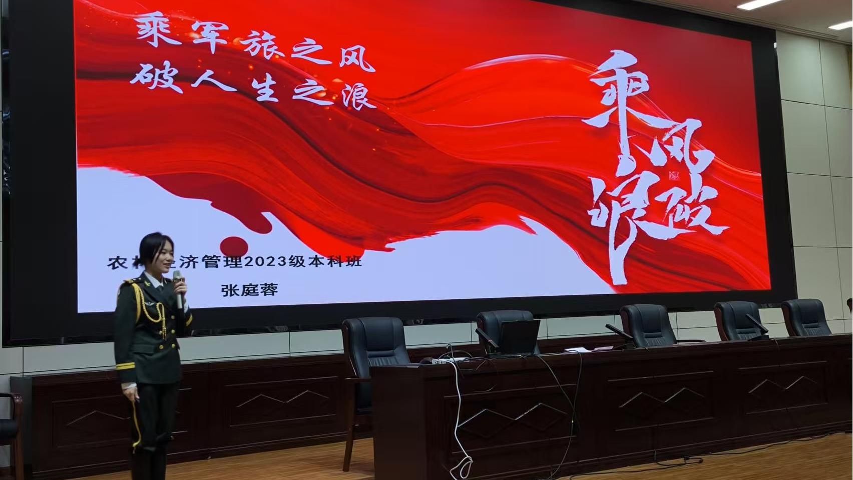 优秀退伍大学生代表代玉成、张庭蓉分享军旅生涯。他们讲述了在部队训练、生活的点滴,从初入军营的不适到蜕变成长,以及对个人意志品质的磨炼,让在场学生深受感染,进一步坚定参军报国的决心。