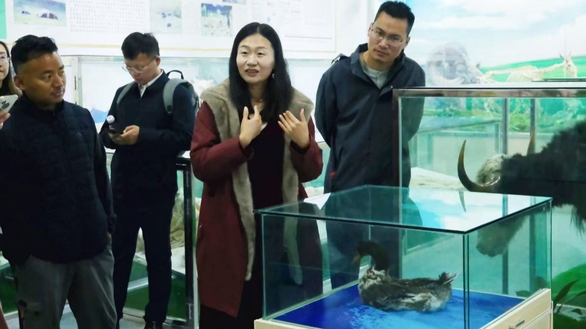 最后一站,众人来到西藏农牧学院标本馆。馆内,形态各异的高原特有动植物标本有序陈列。资源与环境学院动物学专家于晶晶老师化身“故事讲述者”,细致讲解了动物标本从野外采集、防腐处理到姿态塑造的全过程,更将每个标本背后的科研故事娓娓道来。王芳老师则聚焦西藏特有的植物宝藏,围绕大型真菌、兰科植物、藏药资源等,带领大家探索有趣的生命世界。