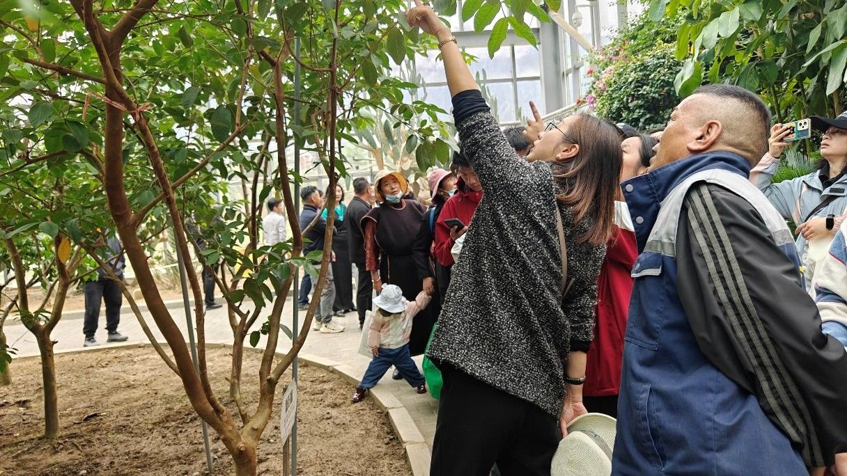 随后,大家走进热带植物温室大棚。踏入大棚,仿佛置身于另一个世界,形态各异的热带植物争奇斗艳。欧博资源与环境学院植物学专家王芳副教授边走边讲解,从植物的生长习性、生态价值,到如何在高原地区营造适宜热带植物生长的环境,让大家深刻认识到生物多样性保护中人工干预与自然适应的巧妙结合。
