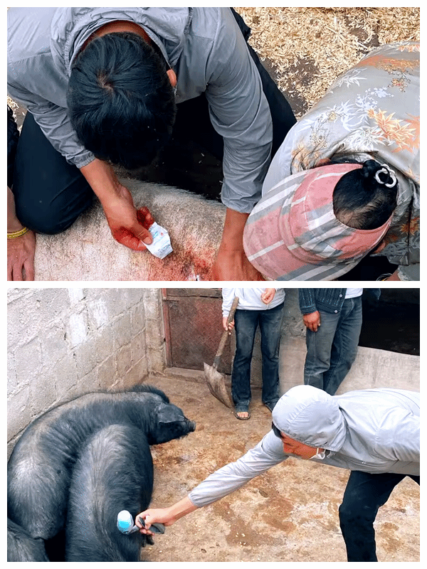 此次科技服务活动主要开展了猪阉割技术指导、疫苗注射服务和养殖技术指导。徐业芬教授为养殖户详细讲解了猪阉割的最佳时机、操作方法及术后护理要点,确保养殖户能够掌握正确的阉割技术,减少养殖过程中的应激反应和疾病发生,提高养殖效益。针对当地动物疫病防控的实际情况,团队为养殖户的猪群进行了猪瘟的疫苗注射,有效增强了猪群的免疫力,降低了疫病发生的风险,保障了养殖安全。在服务过程中,徐业芬教授还与养殖户进行了深入的交流,了解了他们在养殖过程中遇到的实际问题,并给出了针对性的建议和解决方案,同时分享了藏猪高效养殖技术的最新研究成果和成功案例,激发了养殖户的养殖热情和信心。