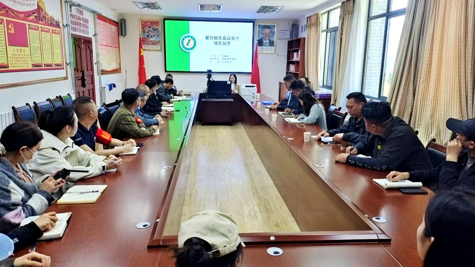 在“七一”来临之际,6月10日上午,后勤管理处党总支第二教工支部与食品学院教工党支部开展了支部联建活动,旨在发挥专业优势和实践阵地互补作用,实现教学相长,共同进步,食品学院、后勤管理处和各餐饮企业负责人、食品安全员参加了活动。