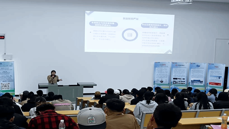 紧接着,上市公司代表一一登台宣讲,他们用详细的资料、精美的PPT、幽默诙谐的语言、生动感人的案例、成功区外就业典型事例介绍了湖北航特、TCL、长城汽车、武汉德泰纳企业等企业的文化、规模、发展、远景,尤其对员工的培训、薪资待遇、发展空间有了很好的阐述,极大吸引了现场的毕业生们。最后学生参与面试互动,与企业面对面交流,多人投递简历表达了就业愿望。