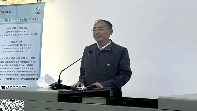 活动伊始,由次仁央金院长为本次活动致辞,强调区外就业是重要的就业渠道,要求毕业生们聚焦区外就业政策和岗位需求,通过借助宣讲打开就业思维、通过招聘活动实现区外就业,鼓励毕业生锚定适配岗位、开启职业新篇。
