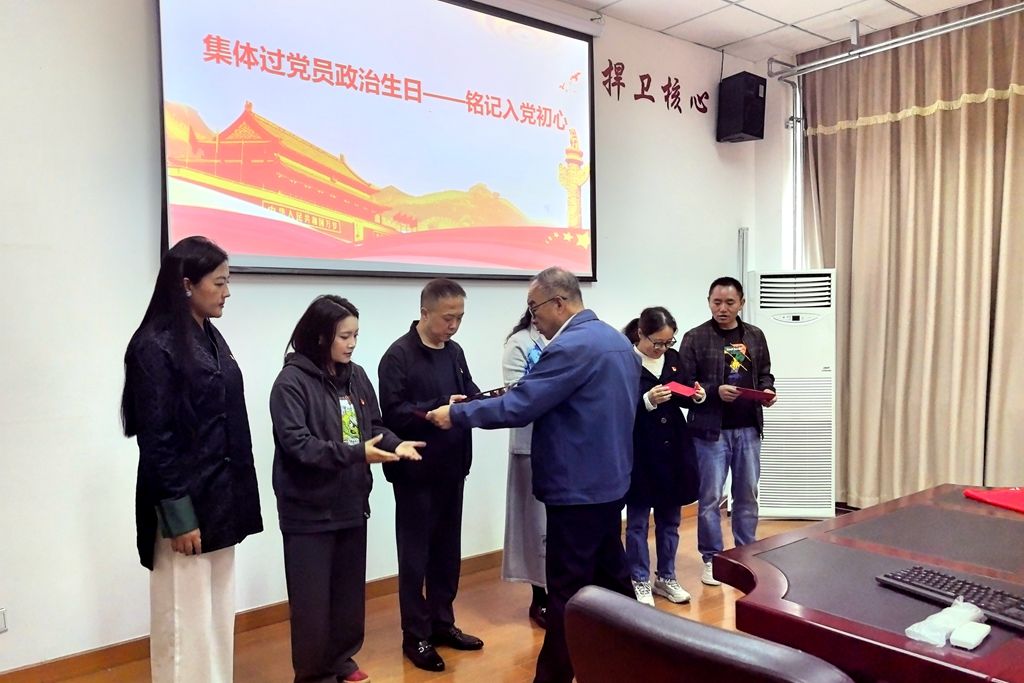 政治生日,铭记入党初心。支部精心组织了集体过党员政治生日环节,为全体党员准备了承载着党组织关怀与期望的“政治生日卡”。党支部书记张宏伟同志亲自为党员们赠送生日卡,现场气氛温馨而庄重。