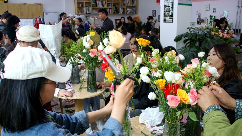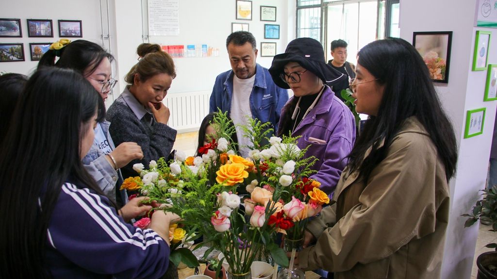 在实操环节,老师们迫不及待地拿起花材与工具,在花艺师的耐心指导下,充分发挥自己的创意与想象,精心构思、细心修剪、用心搭配。不一会儿,原本普通的花材在老师们的巧手下,变成了一束束造型各异、娇艳欲滴的插花作品。大家手捧自己的杰作,脸上洋溢着幸福与自豪的笑容。活动接近尾声,老师们纷纷展示自己的插花作品,并分享创作心得。现场气氛热烈,大家相互交流、相互欣赏,共同感受着插花艺术带来的乐趣与美好。
