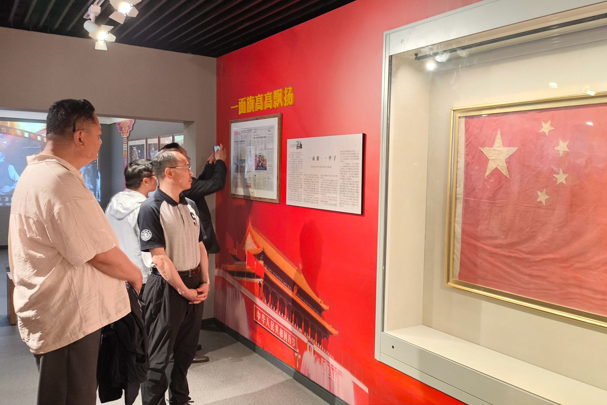 在讲解员的细致讲解引导下,大家步入以“解放颂”为主题的红色研学主题教育展览馆。展览馆以“绿色家园”“红色传承”“金色立定”三个篇章为脉络精心打造,讲解员深情讲述了1958年旺久老书记被推荐到北京参加少数民族学习班,因成绩优异,1960年10月作为国庆观礼团代表受到毛泽东等党和国家领导人亲切接见。同时也讲述了旺久老书记“一面国旗”的感人故事。透过泛黄的历史照片、镌刻岁月印记的珍贵文物及栩栩如生的场景复原,党员干部深切感悟革命先辈为民族解放浴血奋战的峥嵘岁月,心灵受到强烈震撼。