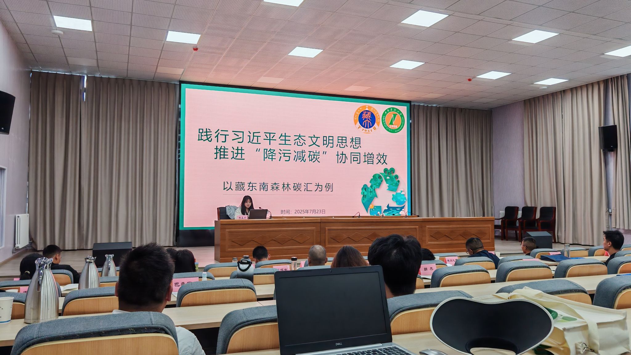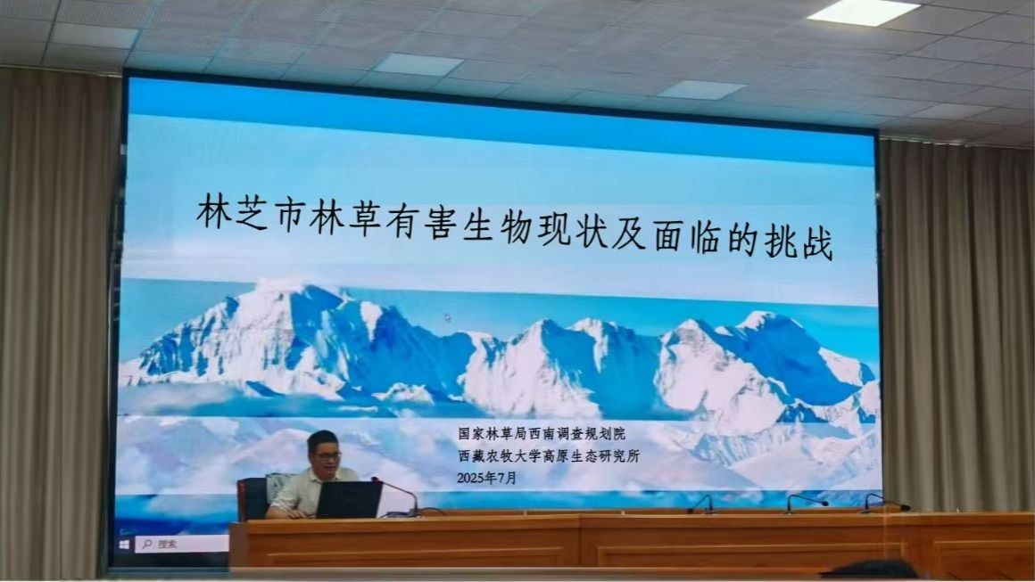 刘飞鹏博士以《林芝市林草有害生物现状及挑战》为题,通过印加孔雀草(危害面积522.44亩)等典型案例为切口,系统解析雅鲁藏布江中下游流域林草生物安全风险链和面临的挑战,提出“分级治理+社区联防”精准防控体系,突出生物安全在国家安全中的战略地位;韩嘉华博士基于藏东南森林9.57亿吨总碳汇量实证,阐明降污减碳协同技术路径,定量揭示碳汇功能与生态屏障的协同机制,为高原生态文明建设输出可复制的区域解决方案。