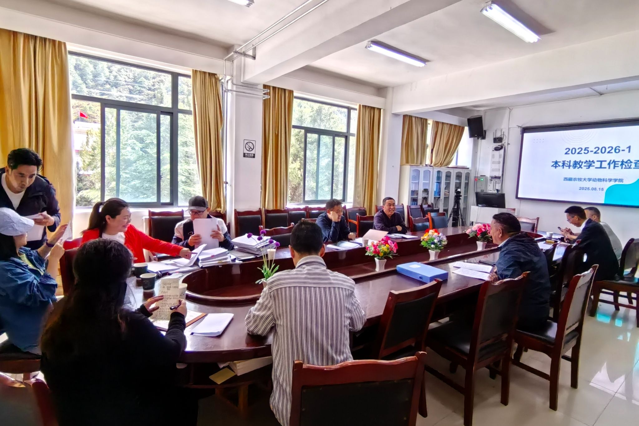 在检查过程中,检查小组依据学院《关于做好2025-2026学年第一学期开学前教学检查工作的通知》的要求,认真听取了各单位的自查情况汇报。同时,查阅了教学日历、教案、教学总结以及新学期各类教学计划等相关材料,详细掌握了师生报到、教学安排、设备维修和实验室安全等方面的工作情况,并现场对发现的问题进行了及时反馈。