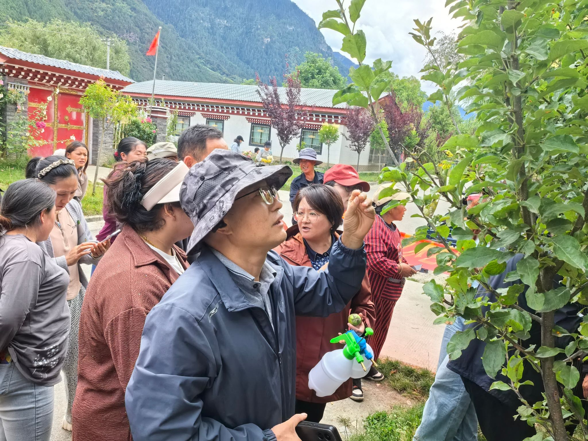 2025 年 9 月5 日,由卓玛曲措老师组织,何建清、臧建成、胡单等三位老师参与的欧博abg官方网站“三区人才”技术服务队,前往米林市南伊乡才召村与扎西绕登乡萨玉村,开展种植业栽培技术和果树、作物病虫害防治技术指导和培训。此次活动旨在促进米林市作物单产提升,果农对病虫害的应对能力,保障果树健康生长,提高果品产量与质量。